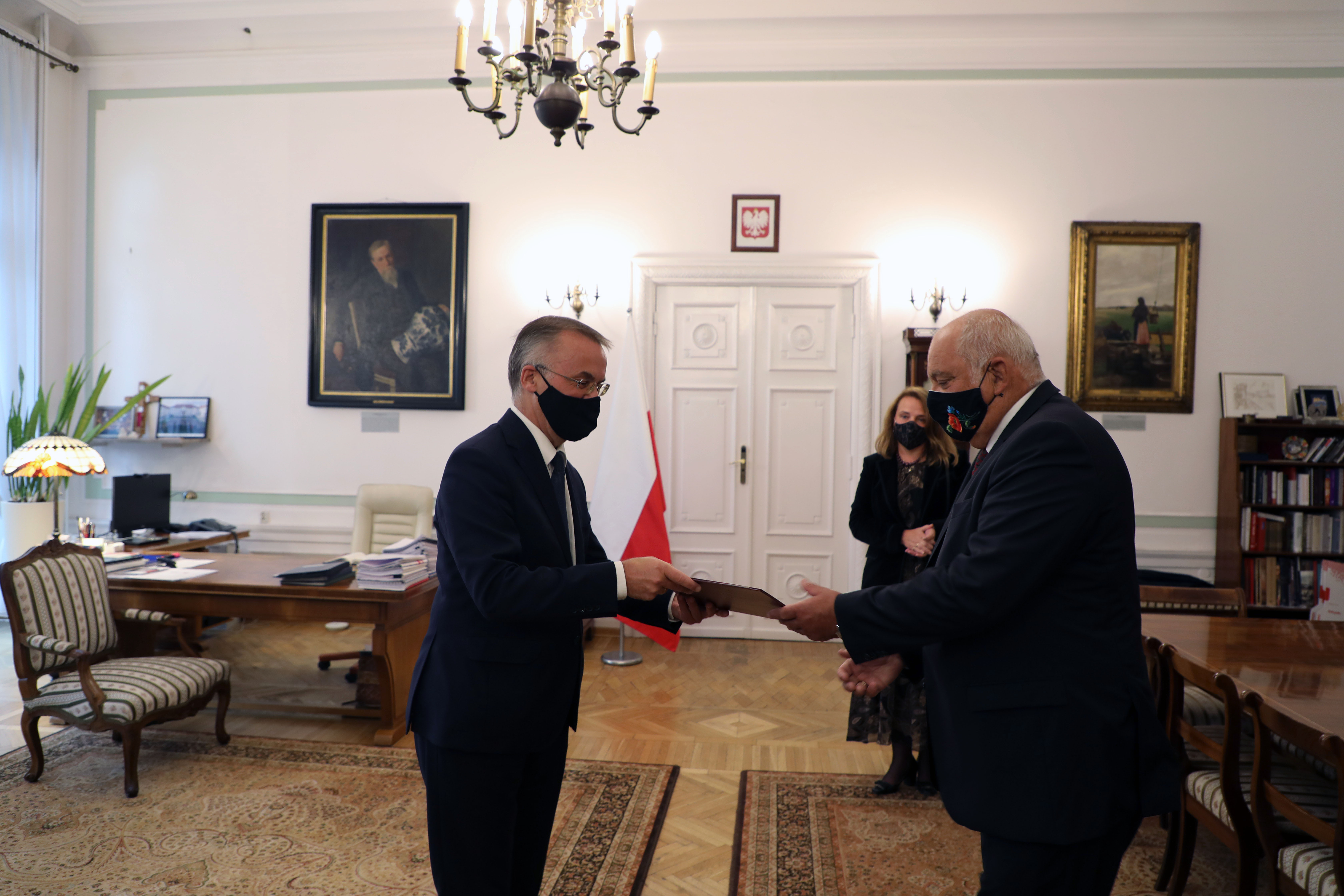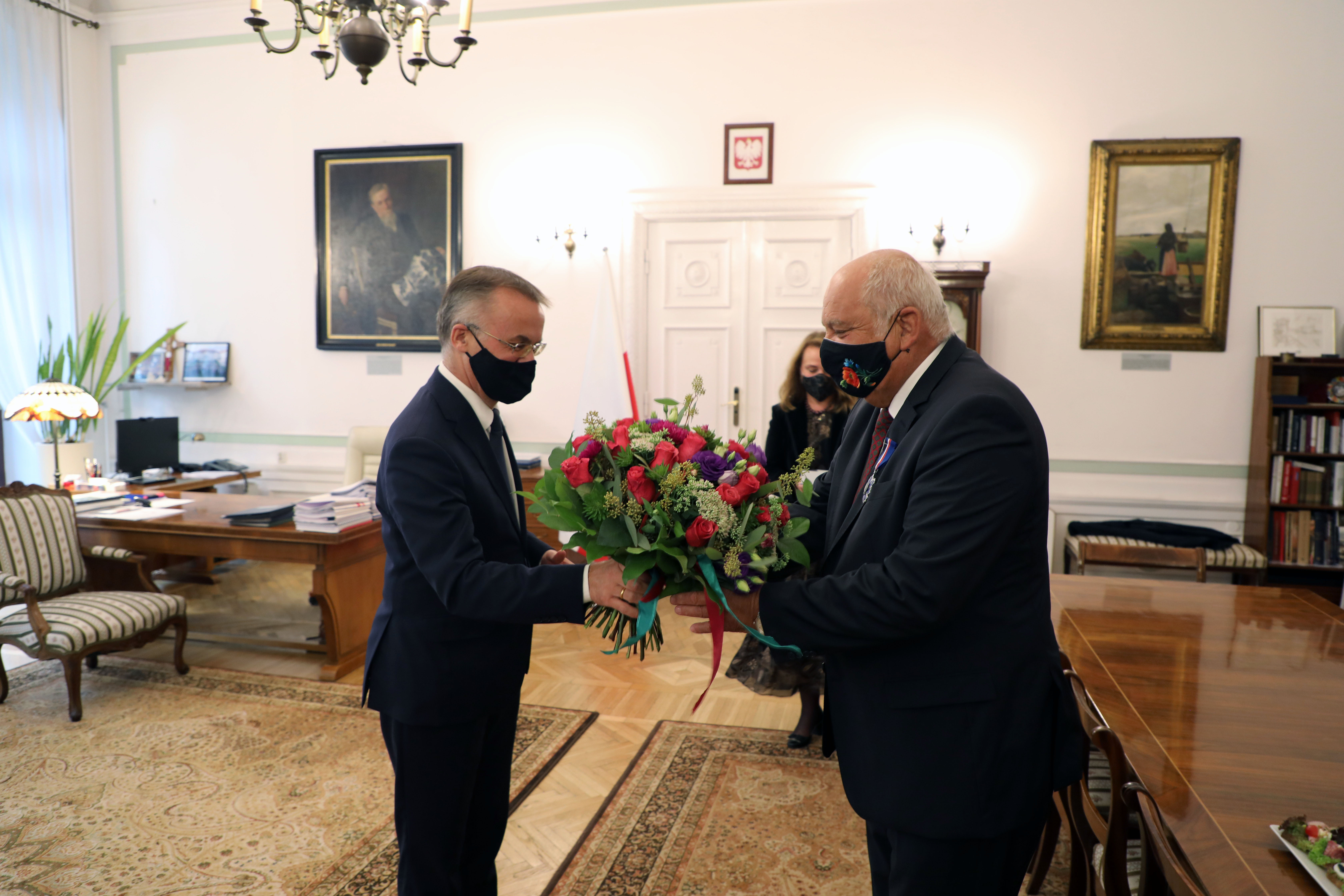 Powierzona Panu funkcja prezesa jednej z najważniejszych w Polsce organizacji twórczych jest bez wątpienia dowodem wieloletniej pracy na rzecz środowiska aktorskiego. Od lat znacząco przyczynia się Pan do tworzenia w Domu Artystów Weteranów w Skolimowie spokojnej przystani dla tych, którzy zapisali wspaniałe karty w historii polskiej kultury. Za Pańską sprawą wiosną bieżącego roku odbyło się uroczyste poświęcenie i przekazanie nowego sztandaru ZASP przedstawicielom najmłodszego pokolenia organizacji. Wydarzenie to miało głęboko symboliczny wymiar wspólnotowości oraz kontynuowania tradycji – podkreślił prof. Piotr Gliński.