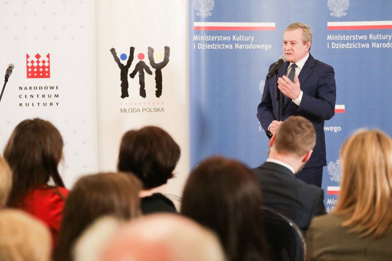 - To jest zawsze bardzo miły moment dla ministra kultury, ponieważ dzisiaj wypełnia się publicznie rola ministra, jako mecenasa. Środki publiczne, którymi dysponuje ministerstwo przekazujemy dzisiaj wybitnym talentom - powiedział minister kultury Piotr Gliński w Pałacu Rzeczypospolitej w Warszawie, podczas wręczania stypendiów „Młoda Polska”. W XV edycji Programu Stypendialnego MKiDN wyróżnionych zostało 97 osób. Stypendia mają umożliwić dokonanie znaczącego postępu w karierze artystycznej. Uroczystość odbyła się 26 marca br.