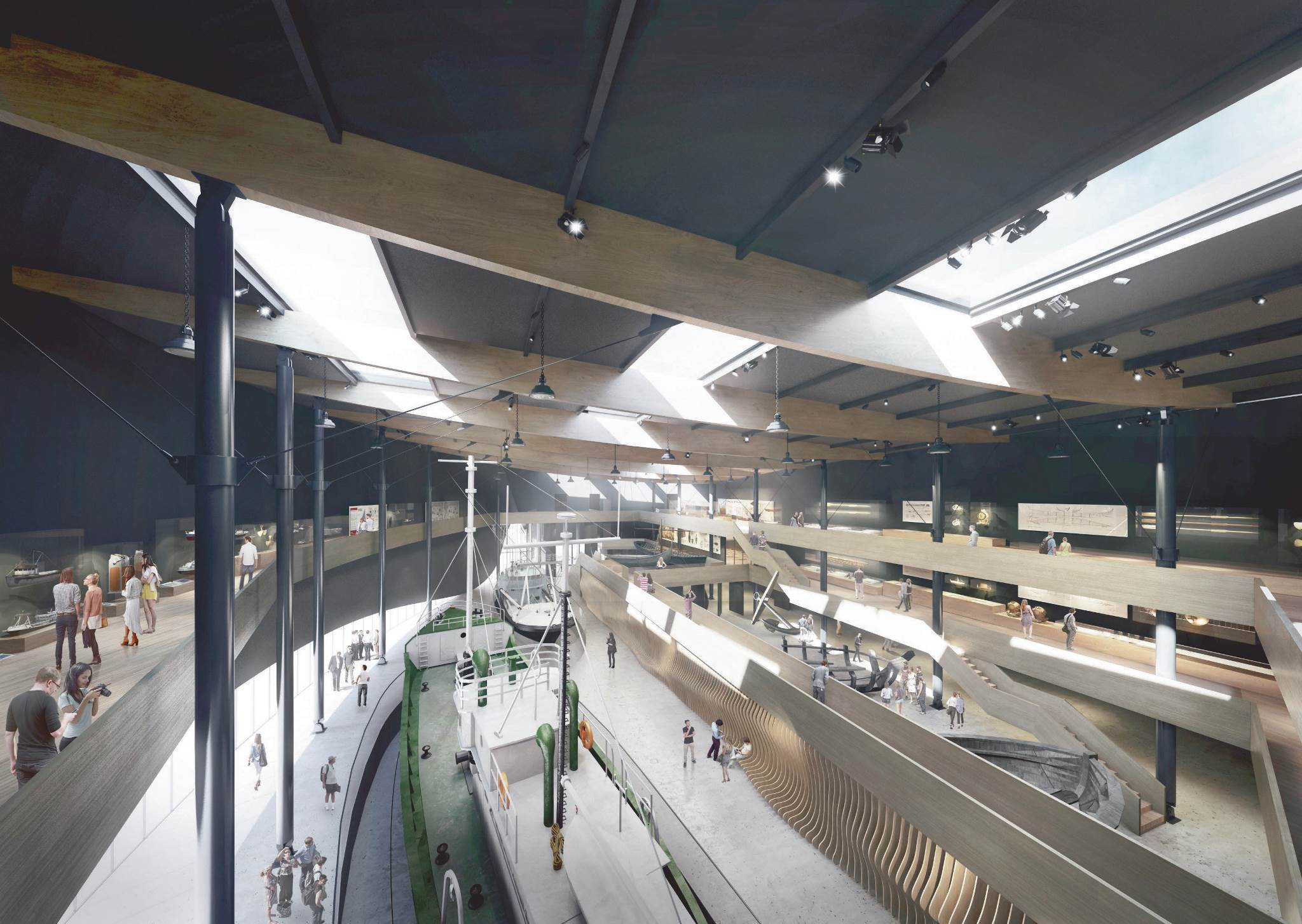 Głównymi założeniami ekspozycji znajdującej się w nowym oddziale w Łebie będą chronologiczno-tematyczne przedstawienie wszystkich aspektów archeologicznych badań podwodnych prowadzonych przez Narodowe Muzeum Morskie w Gdańsku oraz zaprezentowanie szeroko pojętych zagadnień z dziedziny rybołówstwa bałtyckiego. Powierzchnie wystawowe będą rozłożone na kilku poziomach przestrzennej sali ekspozycyjnej, w których na powierzchni ponad sześciu tysięcy metrów kwadratowych planowane są aranżacja słowiańskich łodzi z czasów wikingów wraz z ówczesną sztuką szkutniczą, wyeksponowanie wraków i obiektów zbadanych i wydobytych w czasie podwodnych badań archeologicznych oraz przedstawienie zagadnień związanych z rybołówstwem morskim takich jak fauna i flora Morza Bałtyckiego, porty rybackie czy rybacy i ich kultura, a także z ratownictwem morskim.