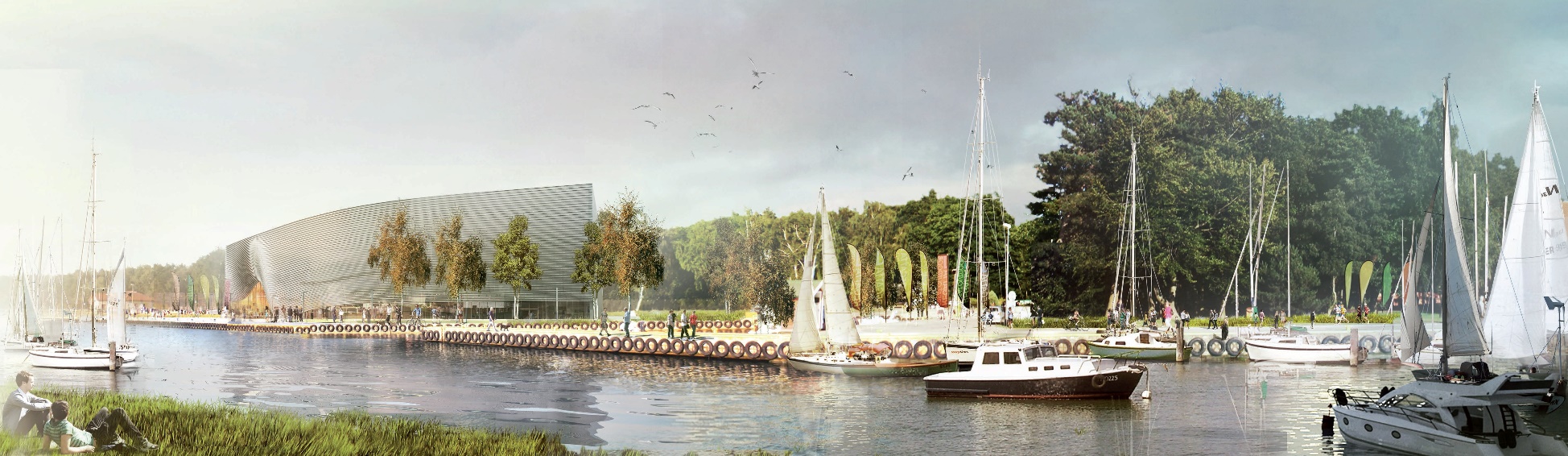 Muzeum Archeologii Podwodnej i Rybołówstwa Bałtyckiego powstanie w pobliżu ujścia rzeki Łeby do Bałtyku. Koncepcja budynku – zaproponowana przez zwycięską pracownię Plus3Architekci Sp. z o.o. z Warszawy – to propozycja jednorodnej bryły o powierzchni zabudowy trzech tysięcy metrów kwadratowych, otwartej na łebską promenadę i kanał portowy. Zaprojektowany budynek ma oryginalną, nowoczesną i dynamiczną formę. Kształt i nachylenie frontowej falującej fasady pokrytej giętymi drewnianymi listwami oraz pionowo rozpięte liny nadadzą obiektowi żeglarski charakter i nawiążą do wyrzuconego na brzeg konaru, kadłuba statku, morskich fal czy nadmorskich wydm.