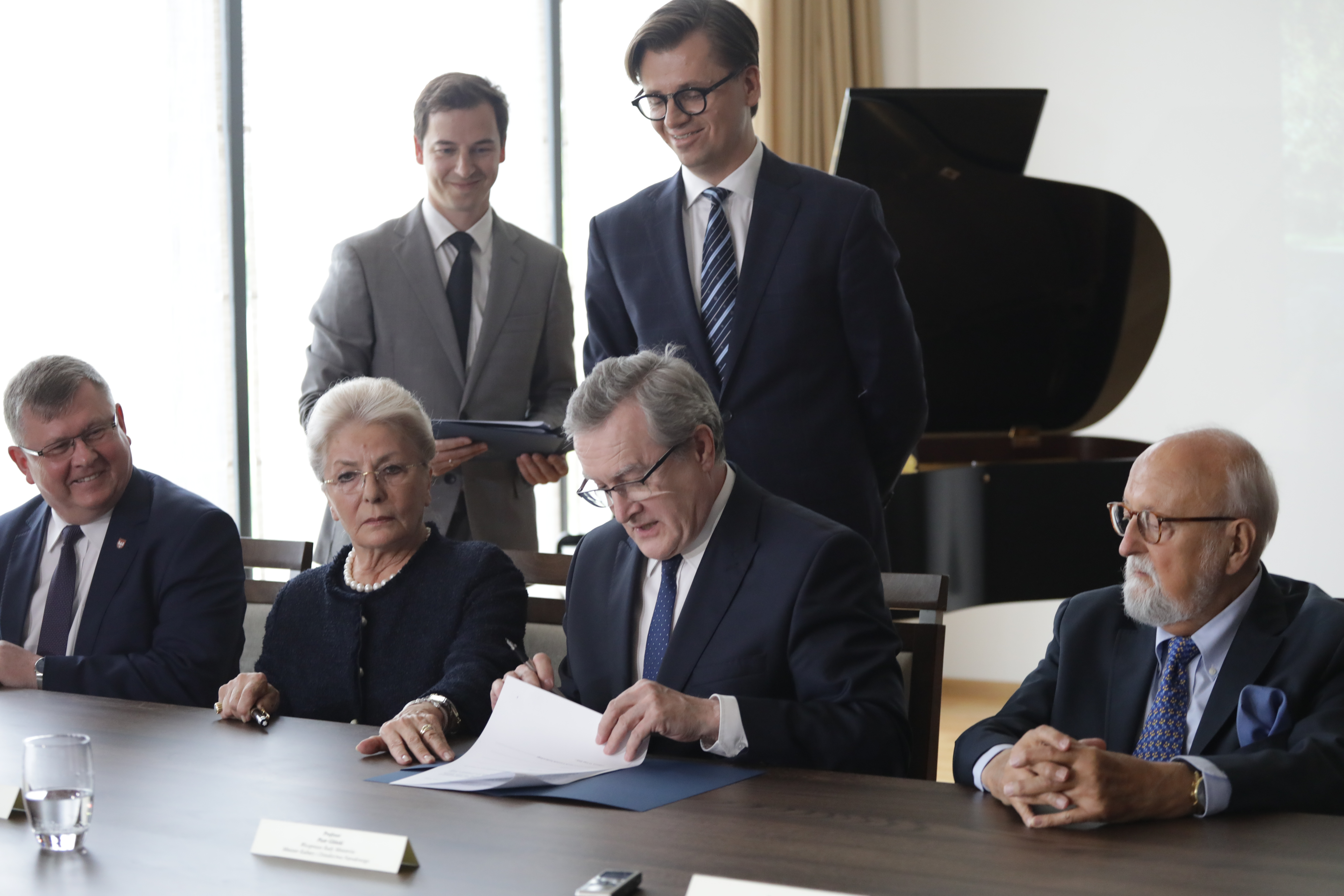 Centrum twórczości Krzysztofa Pendereckiego trafi w przyszłości pod pieczę Państwa Polskiego. List intencyjny w tej sprawie podpisali w poniedziałek w Lusławicach minister kultury i dziedzictwa narodowego, prof. dr hab. Piotr Gliński, państwo Elżbieta i Krzysztof Pendereccy, marszałek województwa małopolskiego Witold Kozłowski oraz dyrektor Europejskiego Centrum Muzyki Krzysztofa Pendereckiego Adam Balas. W uroczystości wzięła udział również wiceminister kultury Wanda Zwinogrodzka.