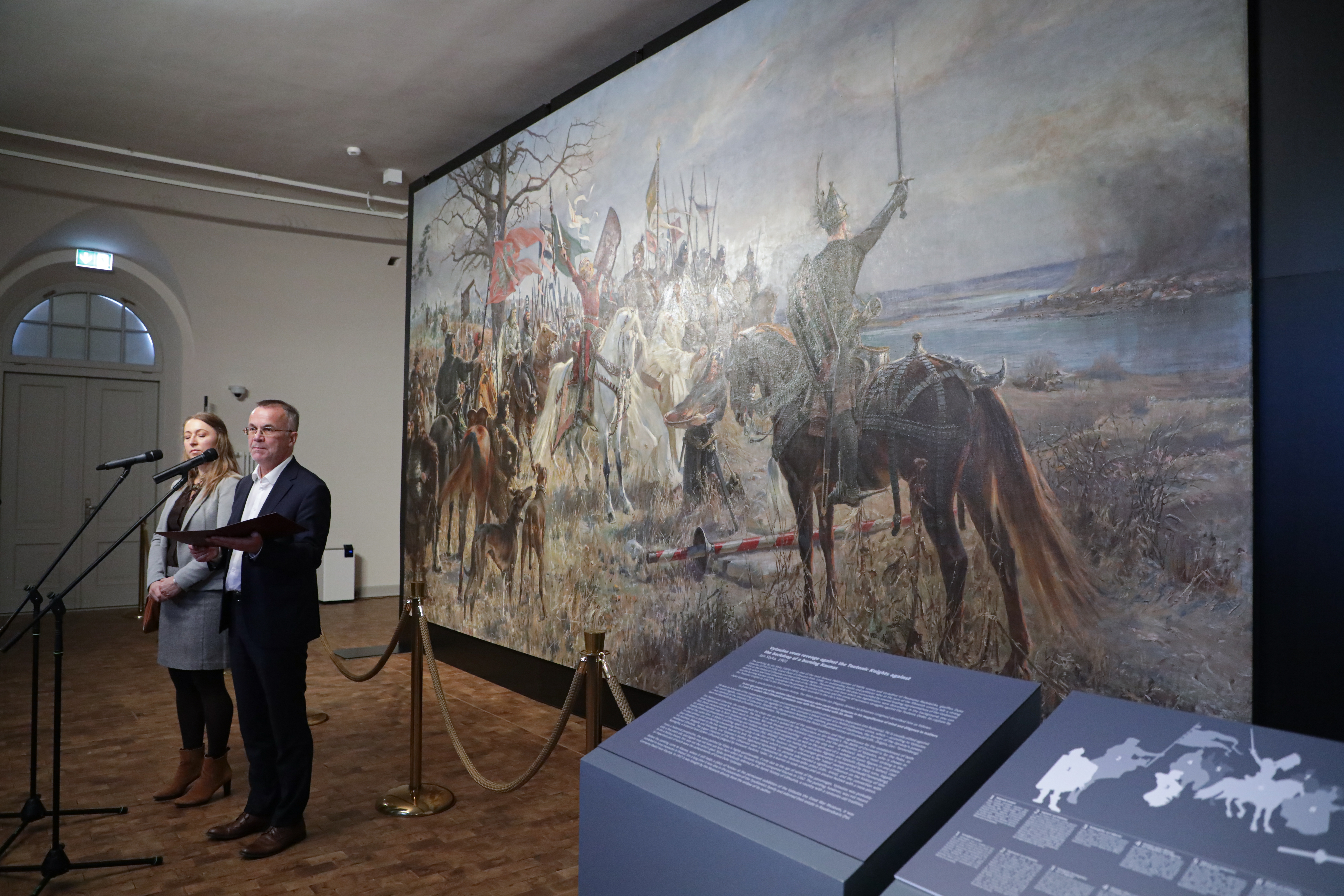 Sekretarz stanu w MKDNiS podkreślił także znaczenie prezentowanych na wystawie wizerunków osób odgrywających kluczowe role w bitwie, czyli hetmana Jana Karola Chodkiewicza, hetmana Stanisława Lubomirskiego oraz wspierającego armię polsko-litewską hetmana kozackiego Piotra Konaszewicza-Sahajdacznego.