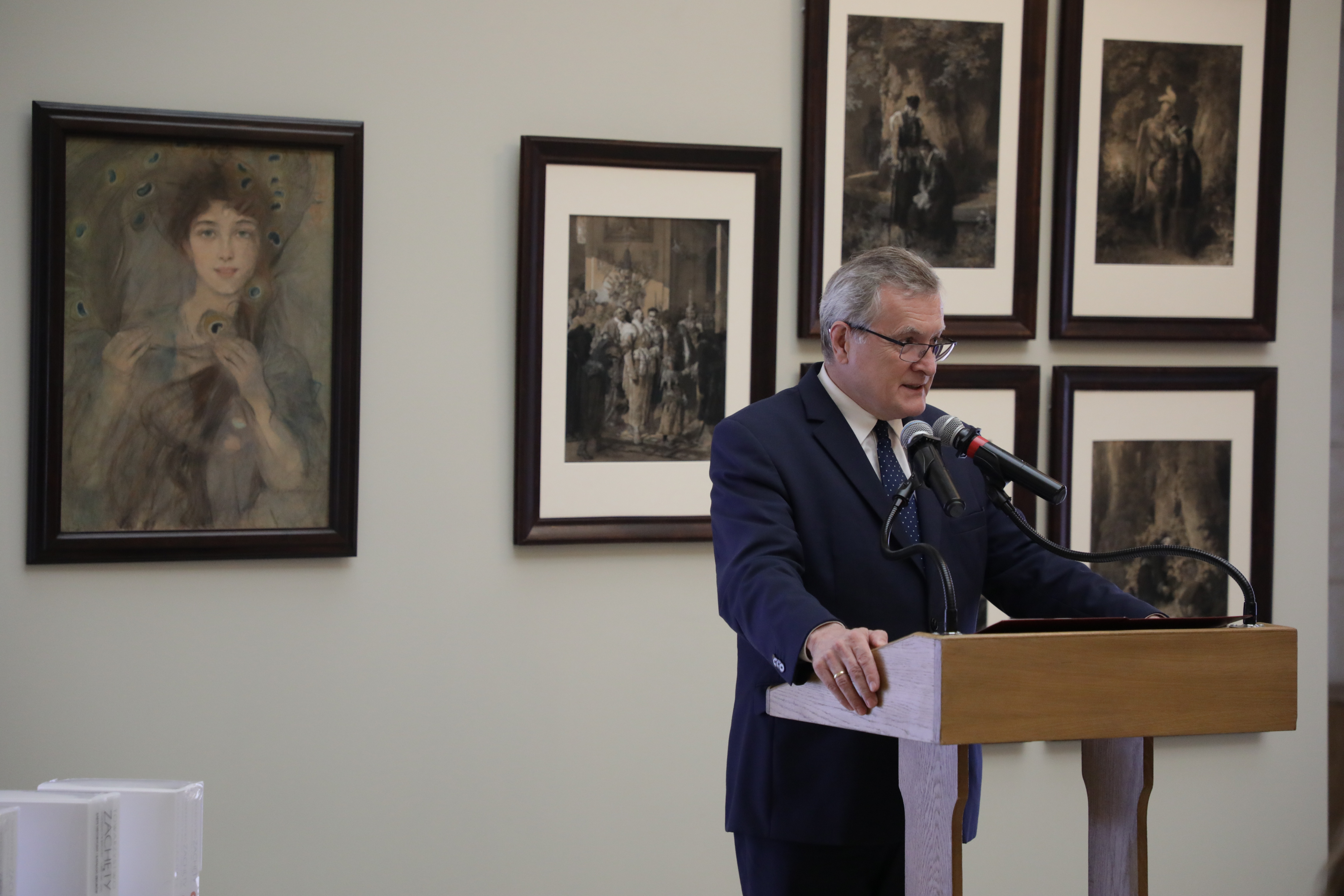 W ostatnim czasie ukazało się trzytomowe opracowanie przedwojennych zbiorów warszawskiego Towarzystwa Zachęty Sztuk Pięknych autorstwa pana Romana Olkowskiego, które mam przyjemność Państwu zaprezentować. W publikacji znajdziemy m.in. odzyskane i przekazywane dziś rysunki Andriollego i pastel Axentowicza. Znaczna część kolekcji Towarzystwa Zachęty nadal pozostaje poszukiwanymi stratami wojennymi, dlatego zachęcam Państwa do zapoznania się z tą publikacją – powiedział minister kultury, dziedzictwa narodowego i sportu.