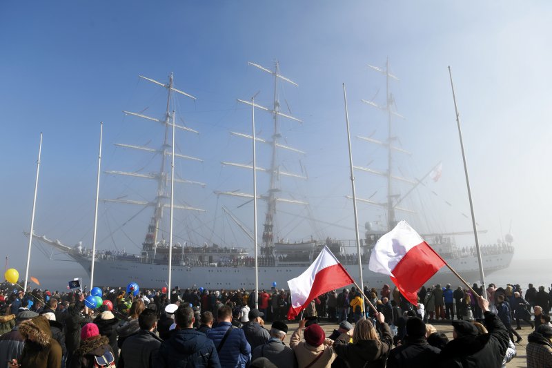 Dar Młodzieży zacumował dziś w Gdyni po ponad 10 miesiącach rejsu dookoła świata, zorganizowanego dla uczczenia setnej rocznicy odzyskania przez Polskę niepodległości. Podczas wpływania do nabrzeża Pomorskiego na skwerze Kościuszki żaglowcowi towarzyszyła parada statków, w tym cztery jednostki Marynarki Wojennej – okręty ORP Piorun i ORP Grom oraz dwie łodzie hybrydowe. W uroczystości powitania żaglowca uczestniczył wiceminister kultury Jarosław Sellin.