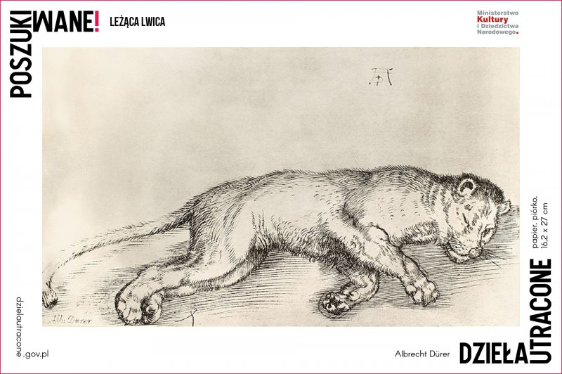 „Leżącą lwicę” Albrechta Dürera zakupił do swojej kolekcji król Stanisław August Poniatowski. Rysunek trafił następnie do Gabinetu Rycin Biblioteki Uniwersyteckiej w Warszawie – najstarszego publicznego zbioru rysunku i grafiki w Polsce, założonego w 1818 r. Zrabowany został w listopadzie 1939 r. przez niemiecką komisję kierowaną przez Josepha Mühlmanna, brata Kajetana Mühlmanna – Specjalnego Komisarza ds. Zabezpieczenia Dzieł Sztuki na Wschodnich Terenach Okupowanych. Najcenniejsze rysunki J. Mühlmann miał osobiście zawieźć do Krakowa. Losy „Leżącej lwicy” do dziś pozostają nieznane. Straty wojenne objęły ok. 60% zbiorów Gabinetu Rycin – całą bibliotekę podręczną, archiwum fotograficzne, inwentarze i katalogi. Niemieckie władze okupacyjne dokonały grabieży najbardziej wartościowych dzieł, zaś część zbioru spłonęła w budynku Biblioteki Ordynacji Krasińskich w 1944 r.