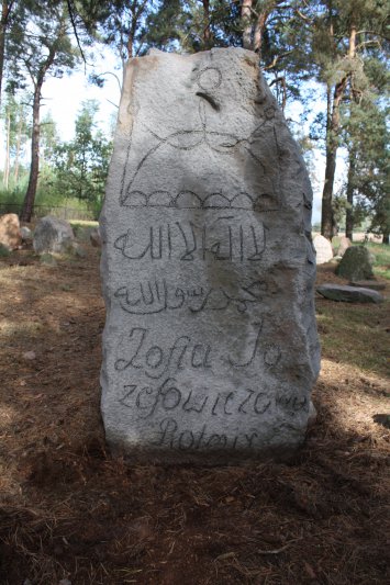 Cmentarz Tatarski w Studziance Nagrozek Zofii Józefowicz w trakcie prac konserwatorskich (z uczytelnioną węglem inskrypcją). Fot. J. Rosiak