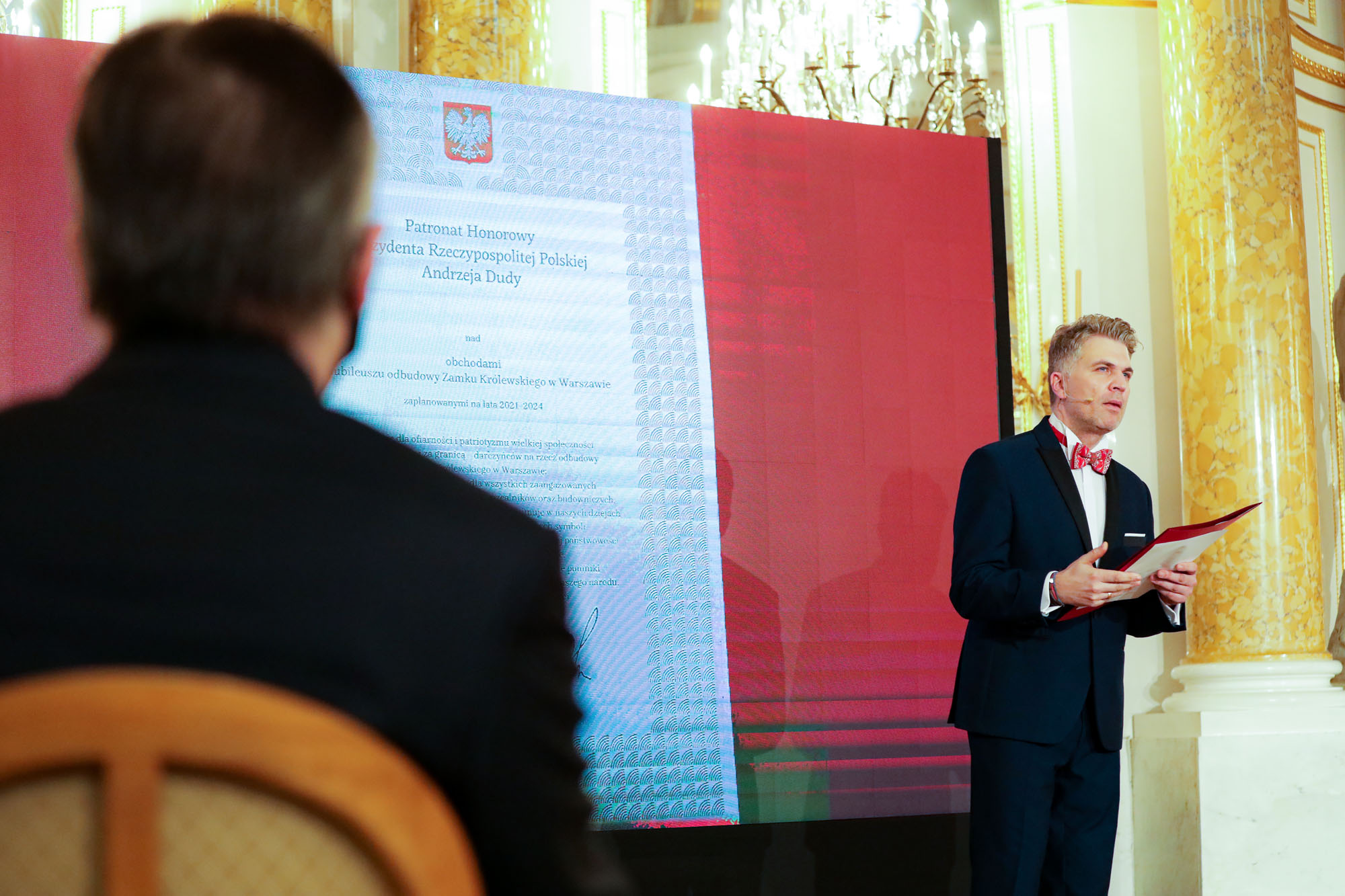Poinformował, że obchody 50-lecia podjęcia decyzji o odbudowie Zamku Królewskiego są wzbogacone o renowację, np. Sali Tronowej.