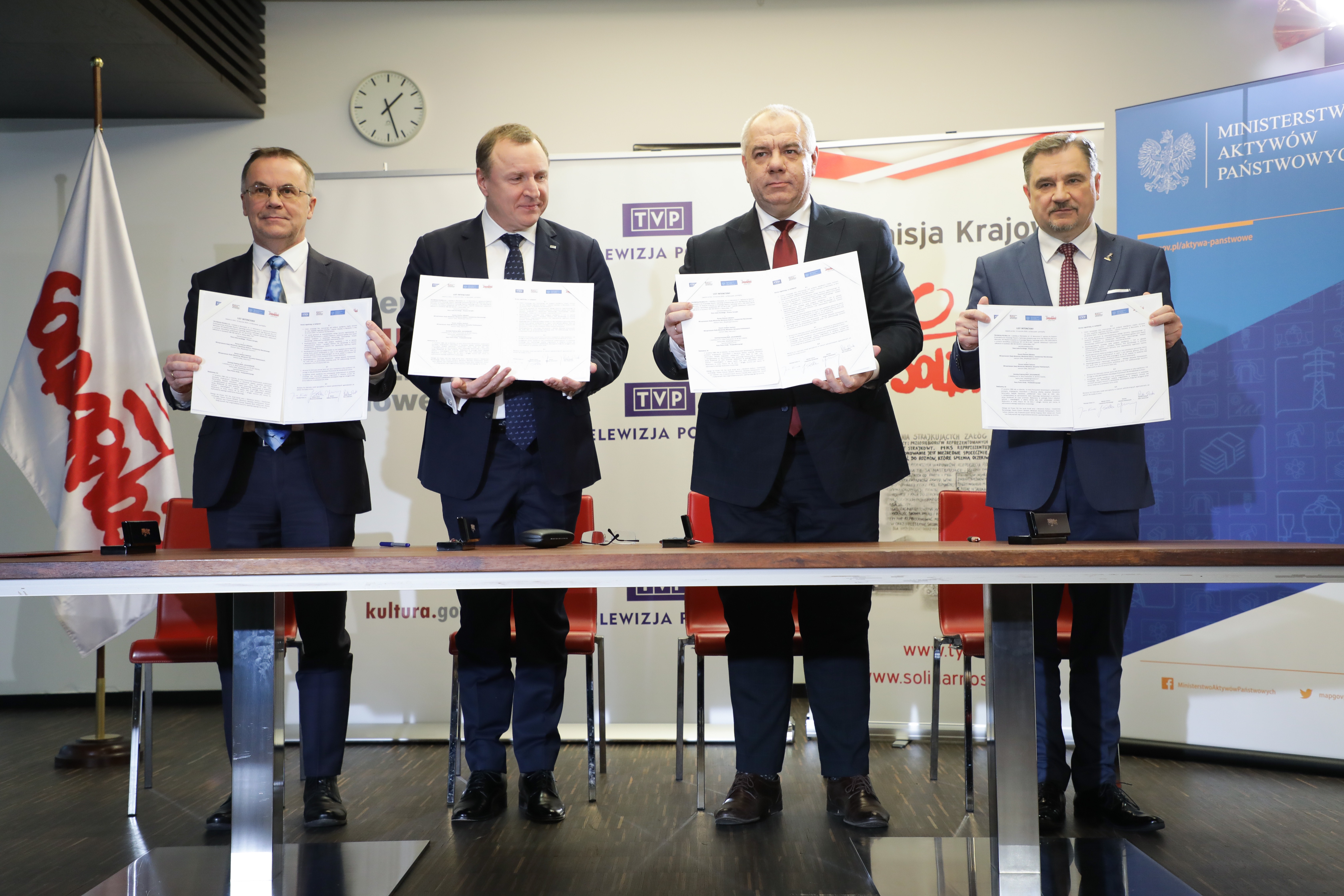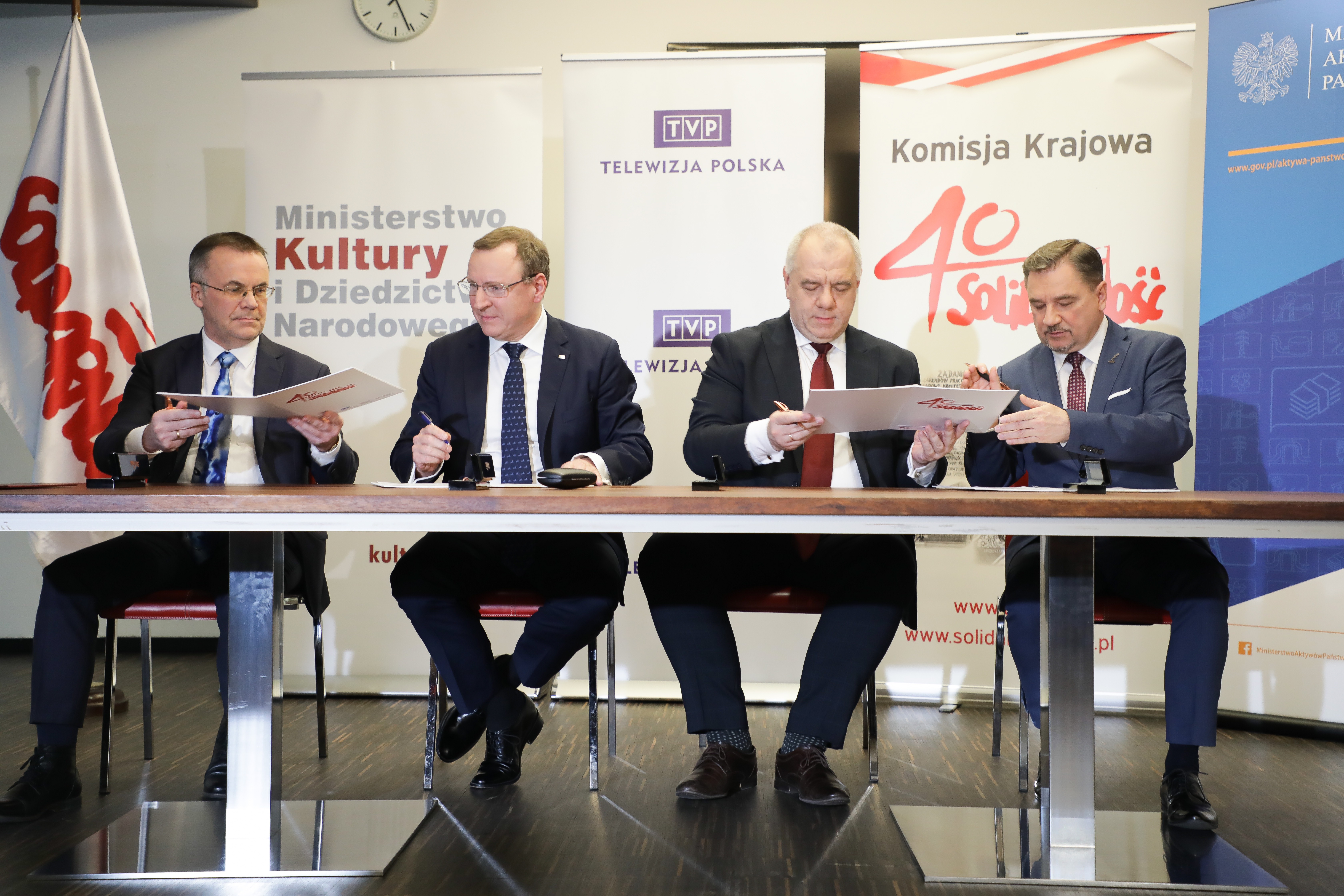 Wiceminister kultury Jarosław Sellin, prezes TVP Jacek Kurski, wicepremier, minister aktywów państwowych Jacek Sasin oraz przewodniczący NSZZ „Solidarność” Piotr Duda podpisali dziś w Warszawie list intencyjny ws. organizacji koncertu z okazji 40-lecia powstania NSZZ „Solidarność”. Do podpisania listu doszło na PGE Narodowym w Warszawie, gdzie na 29 sierpnia zaplanowany jest koncert. W wydarzeniu uczestniczyli także m.in. prezes Grupy Kapitałowej PGE Henryk Baranowski oraz prezes PGE Narodowego Włodzimierz Dola.