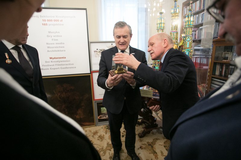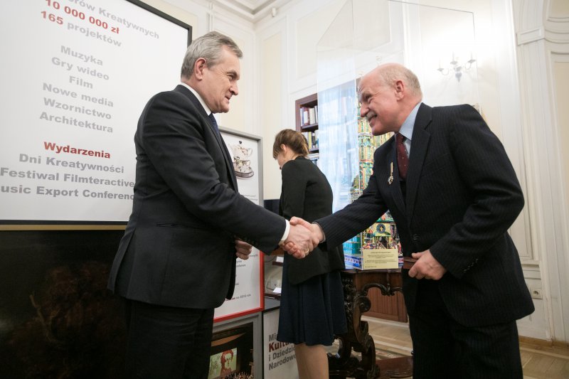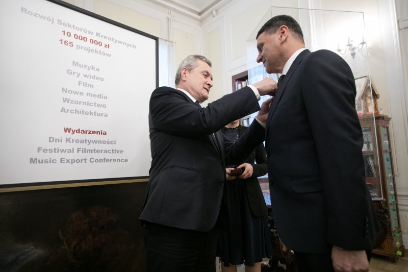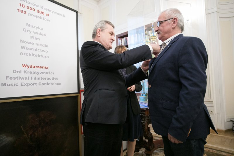 Czterech zasłużonych krakowskich szopkarzy - Jan Kirsz, Stanisław Malik, Zbigniew Gillert oraz Dariusz Czyż - zostało uhonorowanych przez Ministra Kultury i Dziedzictwa Narodowego odznakami „Zasłużony dla Kultury Polskiej”. Niespełna trzy tygodnie temu krakowskie szopkarstwo zostało wpisane na Reprezentatywną Listę Niematerialnego Dziedzictwa Kulturowego Ludzkości. Decyzja została przyjęta podczas 13. sesji Międzyrządowego Komitetu ds. Ochrony Niematerialnego Dziedzictwa Kulturowego na Mauritiusie. Uroczystość wręczenia odznaczeń z udziałem wicepremiera, ministra kultury prof. Piotra Glińskiego i wiceminister prof. Magdaleny Gawin odbyła się 19 grudnia w siedzibie MKiDN.