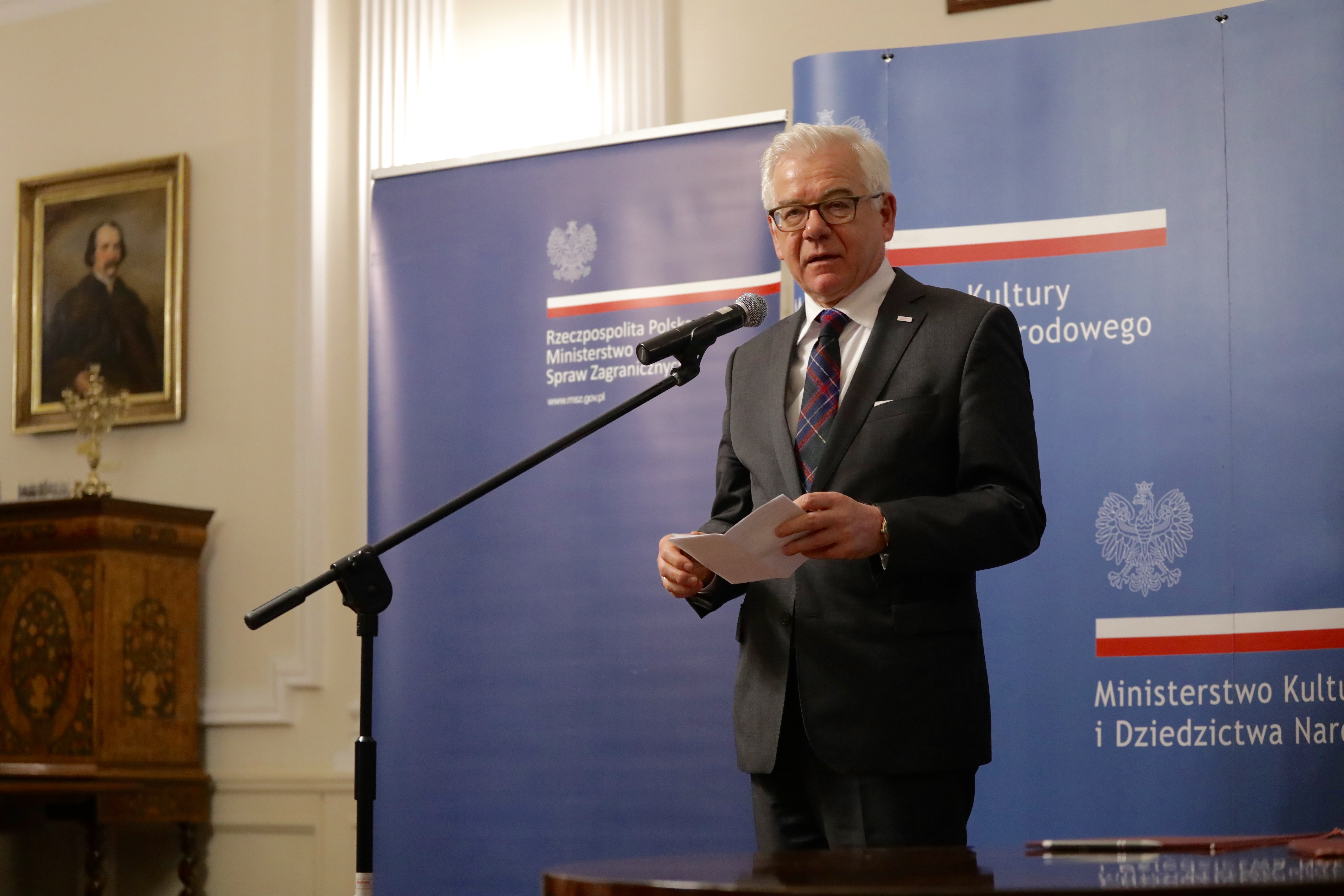 – Dobra współpraca resortów spraw zagranicznych oraz kultury i dziedzictwa narodowego jest kluczowa dla budowania pozytywnego obrazu Polski za granicą oraz pokazywania bogatego dziedzictwa kulturalnego naszego kraju – mówił z kolei minister Jacek Czaputowicz podczas dzisiejszej uroczystości podpisania porozumienia.