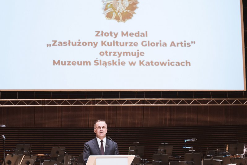 - Minister Kultury i Dziedzictwa Narodowego podjął decyzję o odznaczeniu Muzeum Śląskiego Złotym Medalem „Zasłużony Kulturze Gloria Artis”, biorąc pod uwagę znaczenie tej instytucji kultury dla Śląska oraz doceniając wagę jej pracy na rzecz zachowania dziedzictwa śląskiego dla Polski i przyszłych pokoleń Polaków – powiedział wiceminister kultury Jarosław Sellin wręczając odznaczenie dyrektor Muzeum Alicji Knast. Uroczystość odbyła się przed koncertem Narodowej Orkiestry Symfonicznej Polskiego Radia, inaugurującym obchody 90-lecia Muzeum.