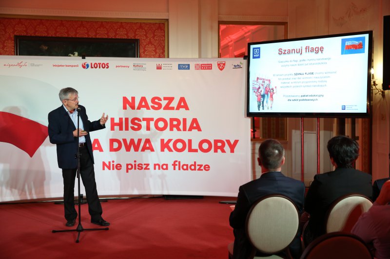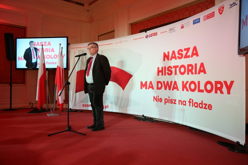„Nasza historia ma tylko dwa kolory. Nie pisz na fladze.” Jarosław Sellin na konferencji prasowej prezentującej kampanię "Barwy wspólne"