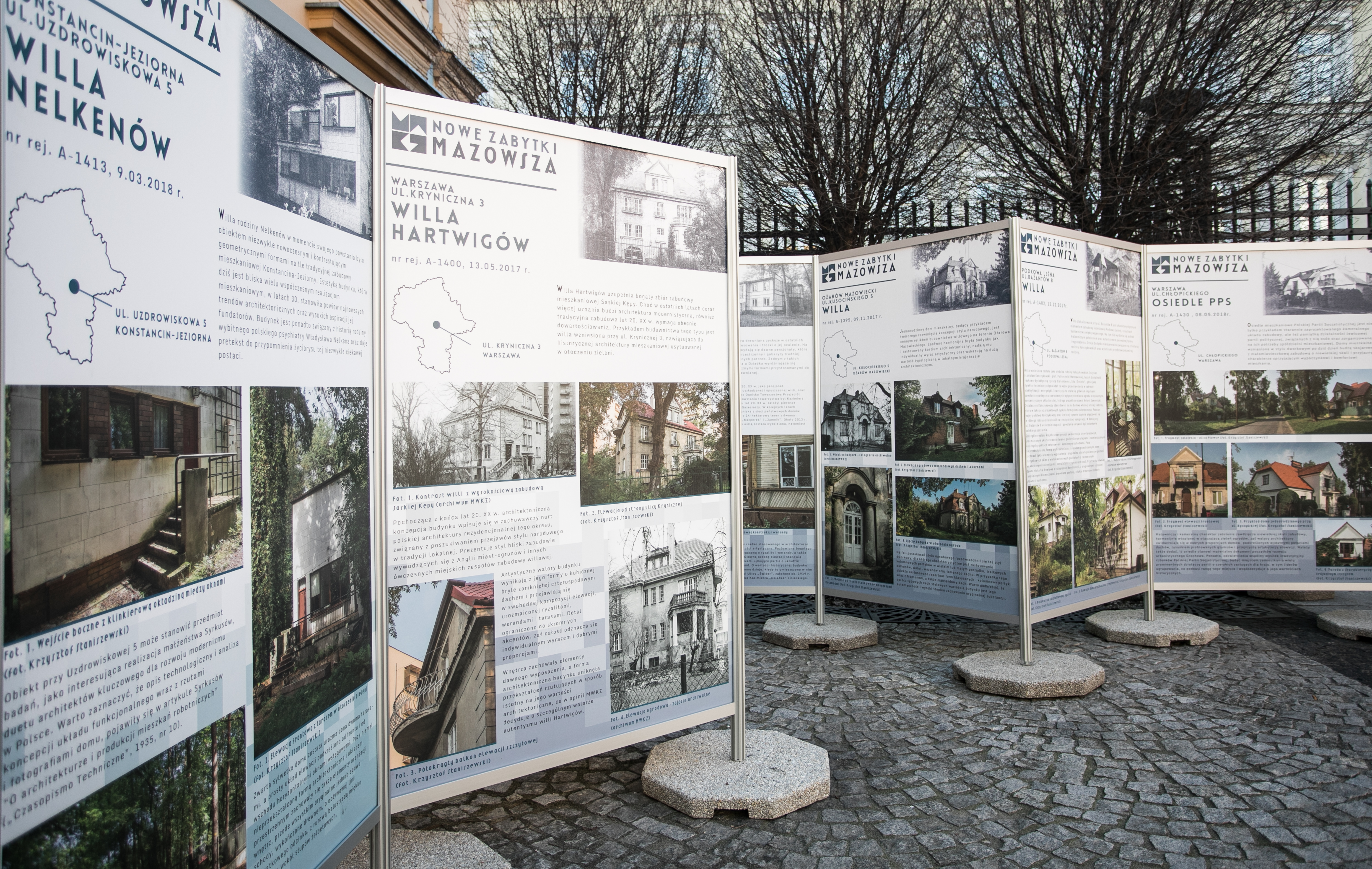 Wystawę „Nowe zabytki Mazowsza – wpisy do rejestru zabytków w latach 2017-2018” można oglądać od stycznia do końca marca na dziedzińcu Pałacu Branickich, przy siedzibie MWKZ (ul. Nowy Świat 18/20), a od kwietnia do maja gościć będzie na Zamku Królewskim w Warszawie.