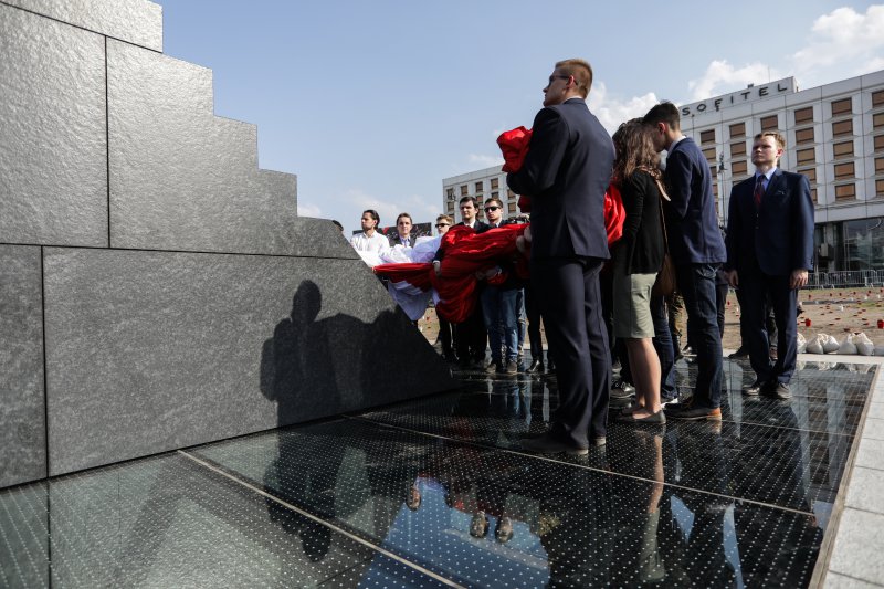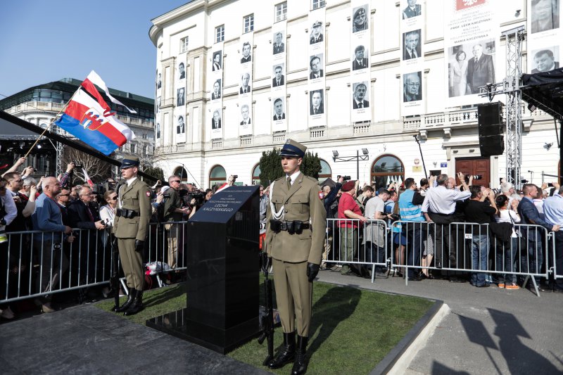 Podczas uroczystości na Placu Piłsudskiego odsłonięty został pomnik ofiar katastrofy smoleńskiej oraz kamień w miejscu, gdzie powstanie pomnik prezydenta Lecha Kaczyńskiego. Odbyło się wystąpienie prezydenta Andrzeja Dudy oraz przedstawiciela rodzin smoleńskich.