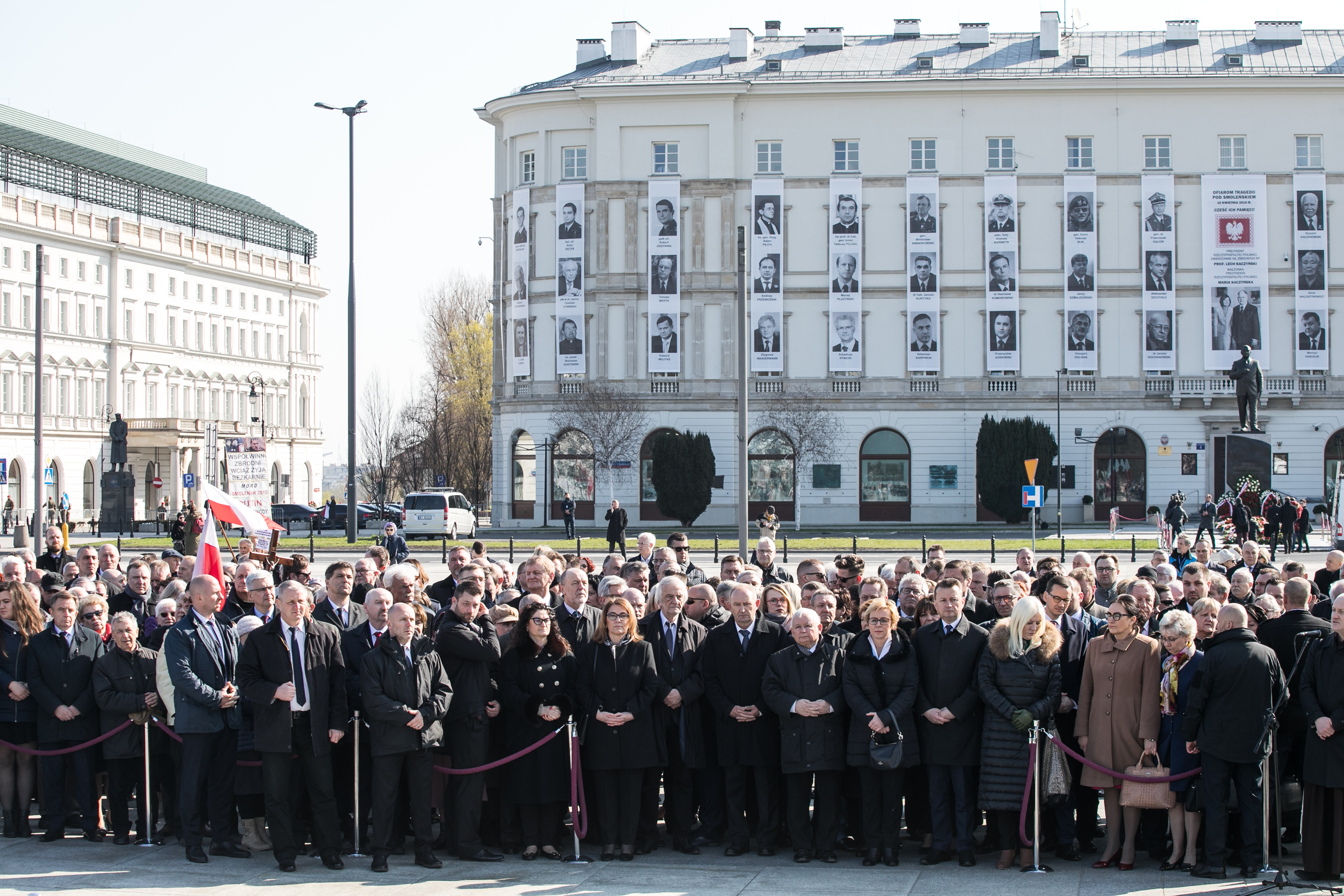 Po mszy św. w kościele Wniebowzięcia Najświętszej Maryi Panny i św. Józefa Oblubieńca na Krakowskim Przedmieściu, jej uczestnicy przeszli pod Pałac Prezydencki, po godz. 8.41 - w godzinę katastrofy sprzed dziewięciu lat - odbył się Apel Pamięci, podczas którego wyczytano nazwiska osób, które 10 kwietnia 2010 r. zginęły pod Smoleńskiem. Prezes PiS złożył wieniec przed tablicami upamiętniającymi ofiary tragedii.