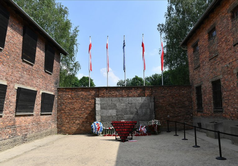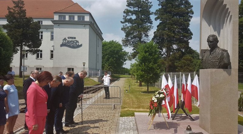 Wiceminister Lewandowski wraz z przedstawicielami władz oraz pozostałymi uczestnikami uroczystości złożył kwiaty pod tablicą upamiętniającą pierwszy transport polskich więźniów, która jest wmurowana w ścianę budynku Państwowej Wyższej Szkoły Zawodowej w Oświęcimiu. To w jego piwnicach 14 czerwca 1940 r. Niemcy umieścili pierwszych więźniów, gdyż sam obóz nie był jeszcze przygotowany na ich przyjęcie. Następnie delegacje złożyły wieńce pod pomnikiem rotmistrza Pileckiego. Kulminacyjnym punktem obchodów było zapalenie zniczy pod Ścianą Śmierci, upamiętniającej wszystkie ofiary niemieckiego nazistowskiego obozu koncentracyjnego i zagłady Auschwitz.