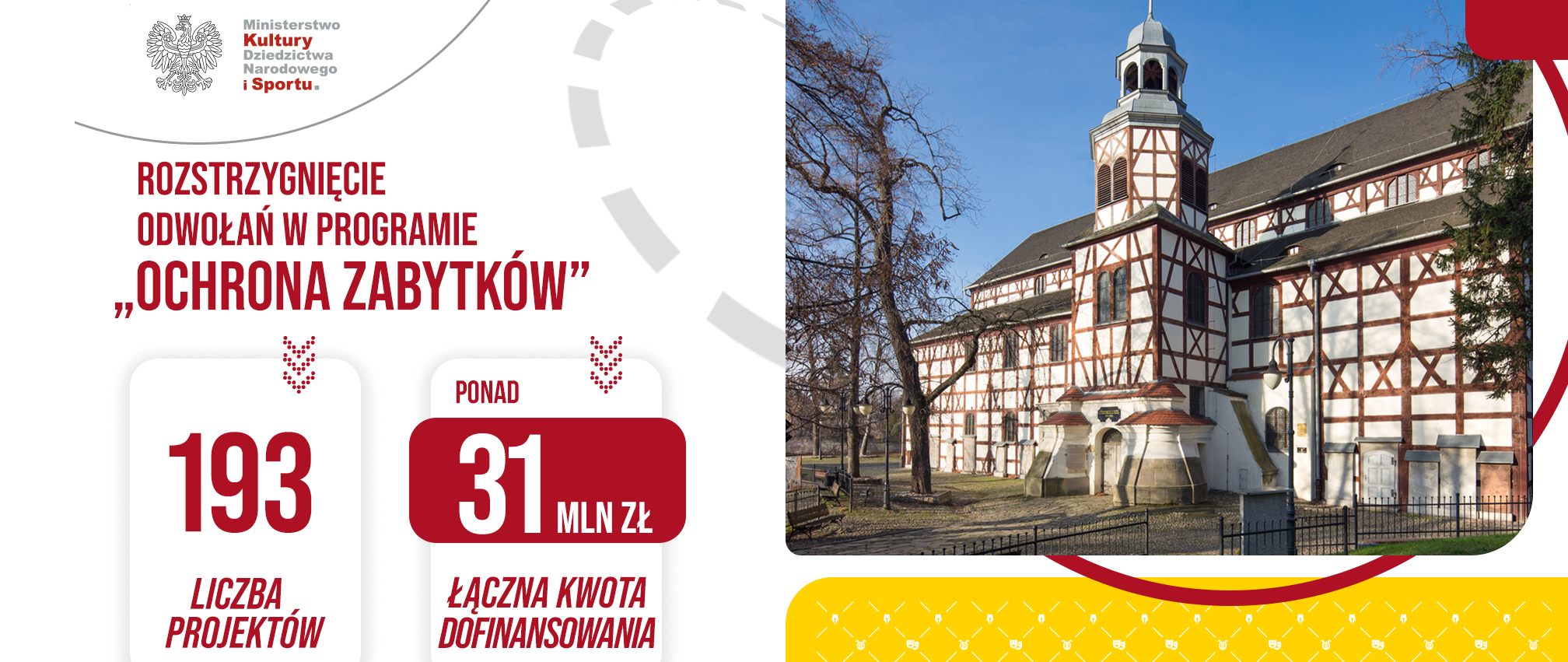 „Ochrona polskich zabytków pozostaje jednym z priorytetów Ministerstwa Kultury, Dziedzictwa Narodowego i Sportu. Cieszę się, że mogliśmy rozszerzyć program „Ochrona Zabytków” o realizację ponad 190 dodatkowych zadań” – powiedział wicepremier, minister kultury, dziedzictwa narodowego i sportu prof. Piotr Gliński. W procedurze odwołań dofinansowanie otrzymały 193 zadania na łączną kwotę ponad 31 mln zł.