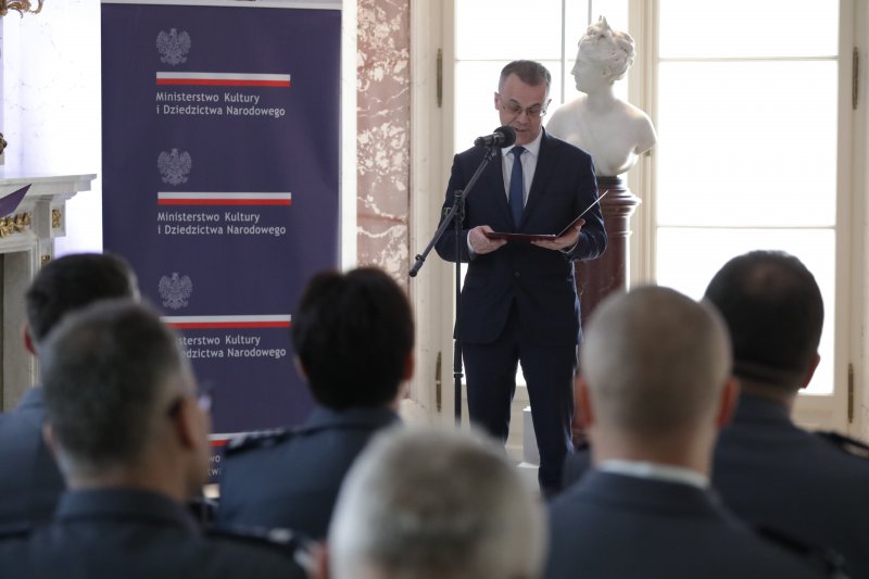 Minister Kultury i Dziedzictwa Narodowego prof. Piotr Gliński uhonorował osoby szczególnie zaangażowane w szeroko pojętą ochronę dóbr kultury. Brązowy Medal „Zasłużony Kulturze Gloria Artis” oraz odznaki honorowe „Zasłużony dla Kultury Polskiej” wręczył funkcjonariuszom Policji i Krajowej Administracji Skarbowej oraz pasjonatowi-badaczowi sztuki wiceminister kultury Jarosław Sellin. Uroczystość odbyła się 4 kwietnia br. w Pałacu na Wyspie w Łazienkach Królewskich.