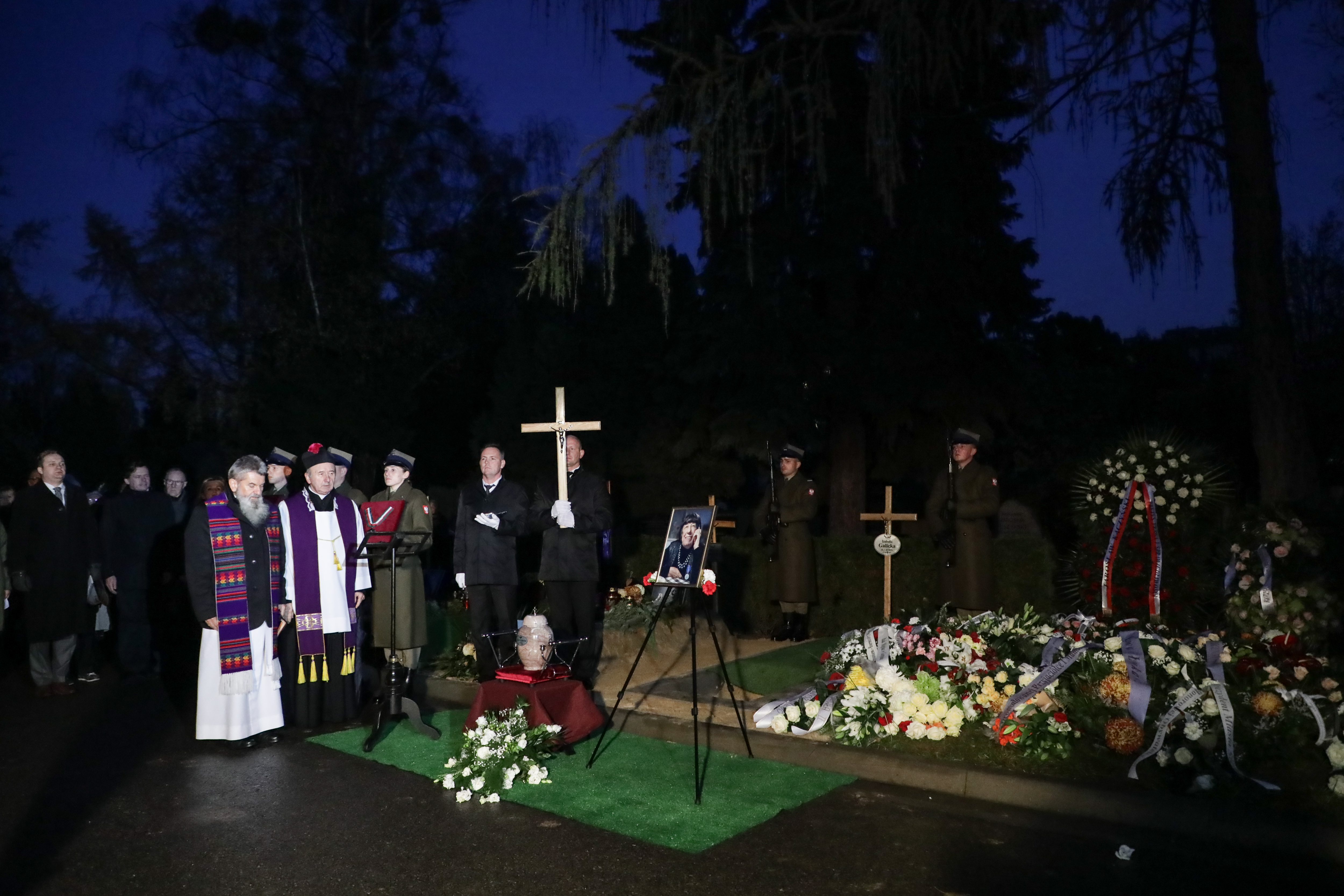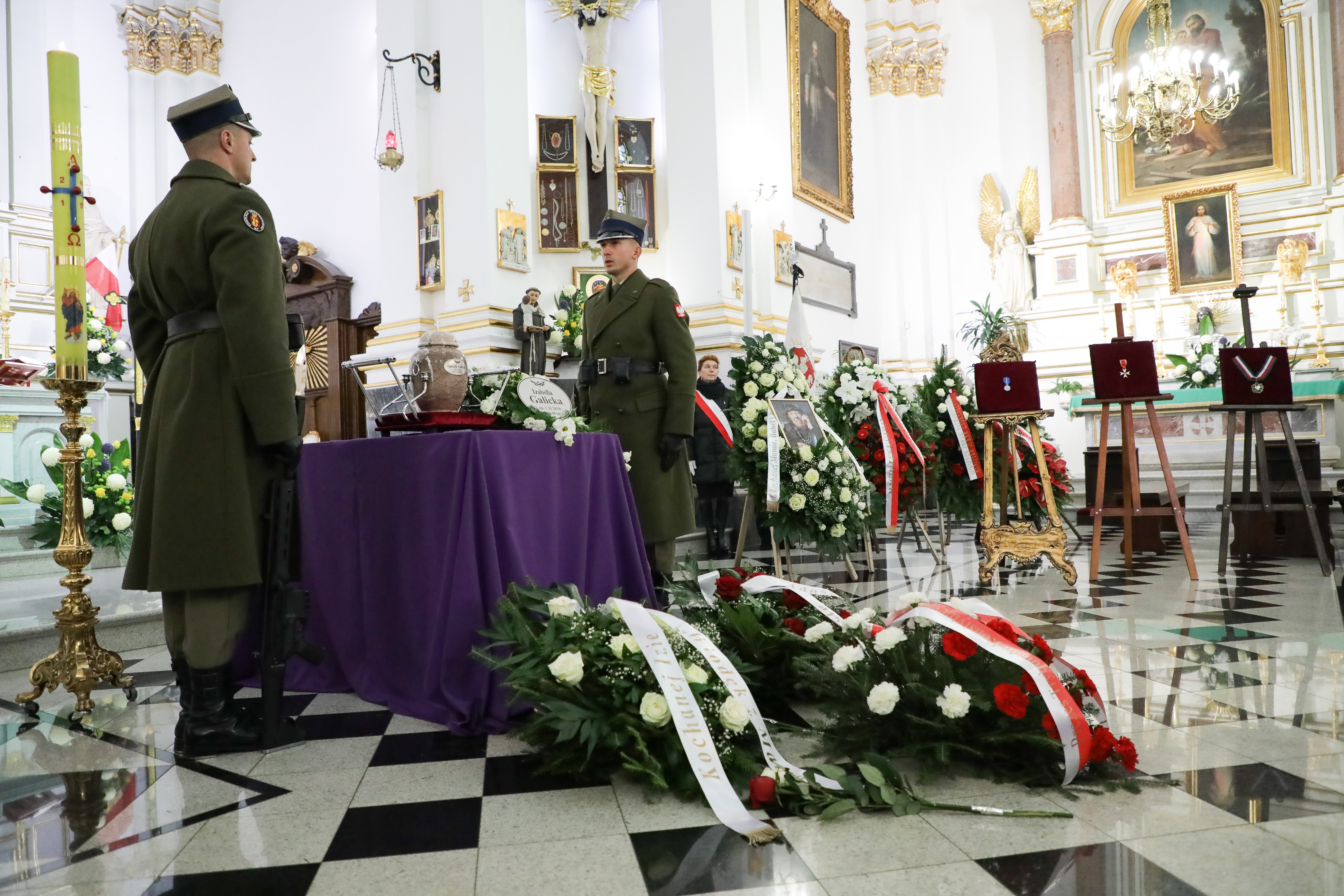 - Spotykamy się dzisiaj, żeby pożegnać osobę wyjątkową; powszechnie szanowaną, lubianą i cenioną. Przez licznych przyjaciół - kochaną. Żegnamy wybitnego historyka sztuki, pedagoga, wykładowcę uniwersyteckiego, odznaczoną Krzyżem Oficerskim Odrodzenia Polski, Złotym Medalem Zasłużony kulturze Gloria Artis, Medalem 100-lecia Odzyskania Niepodległości - powiedział wicepremier, minister kultury podczas uroczystości pogrzebowej dr Izabelli Galickiej. Msza św. żałobna została odprawiona w Kościele św. Karola Boromeusza w Warszawie. Jej ciało spoczęło na Cmentarzu Wojskowym na Powązkach. Wybitną historyk sztuki żegnali dziś przedstawiciele władz państwowych, przyjaciele i rodzina. Dr Izabella Galicka zmarła 1 listopada. Miała 88 lat.
