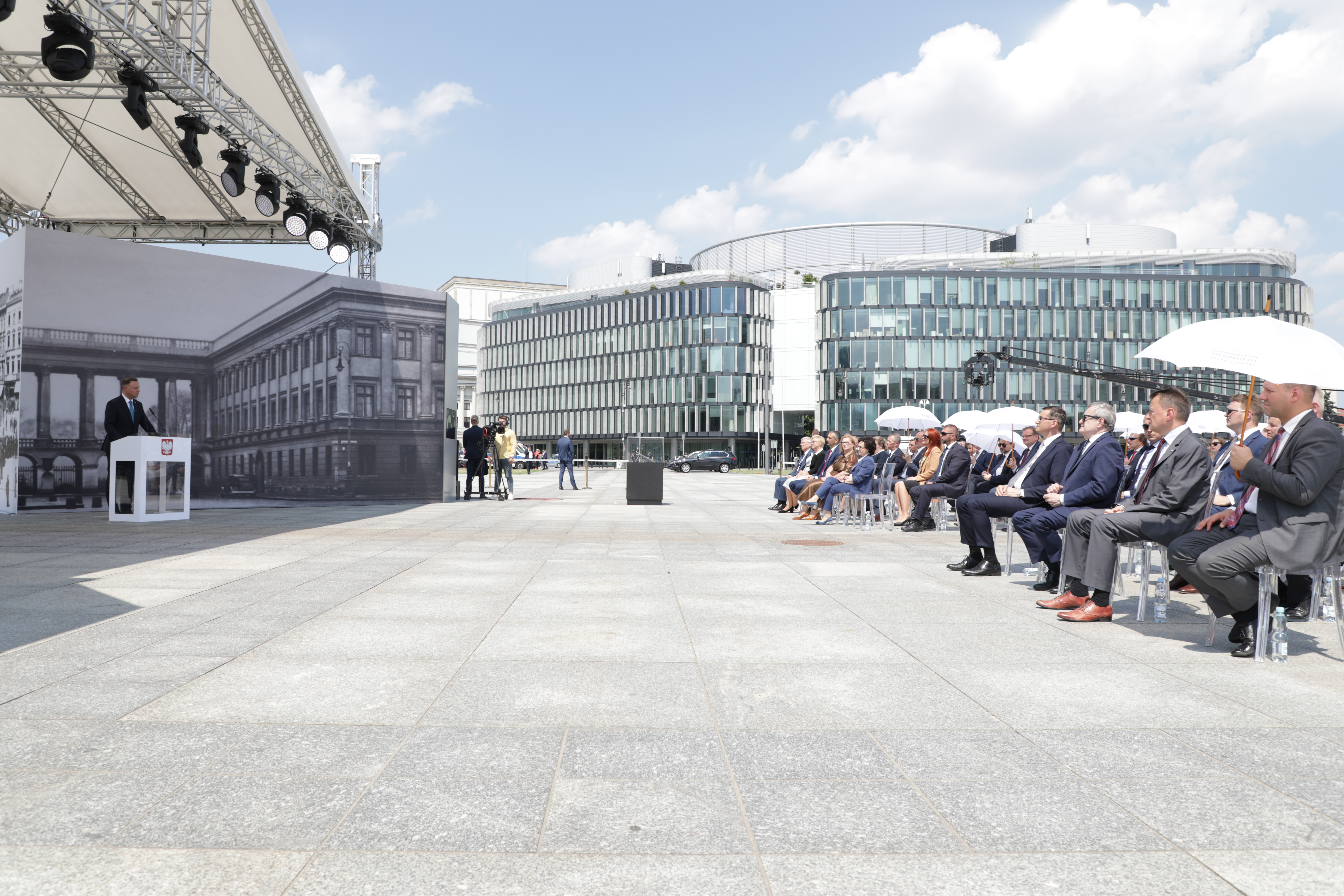 - Odbudowa Pałacu Saskiego to ogromne dzieło o charakterze symbolicznym, które ma zwieńczyć proces odbudowywania stolicy. Rozpoczynamy inwestycję ponad wszelkimi podziałami, dzięki której Warszawa odzyska swój dawny, a jednocześnie nowy blask - powiedział Prezydent Andrzej Duda podczas uroczystości przekazania na ręce Marszałek Sejmu Elżbiety Witek projektu Ustawy o przygotowaniu i realizacji inwestycji w zakresie odbudowy Pałacu Saskiego, Pałacu Brühla oraz kamienic przy ulicy Królewskiej w Warszawie. W wydarzeniu na placu Marszałka Józefa Piłsudskiego wziął udział wicepremier, minister kultury, dziedzictwa narodowego i sportu prof. Piotr Gliński.