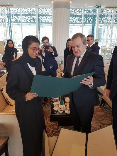 Minister kultury przekazał również list premiera Mateusza Morawieckiego do wiceprezydenta i premiera ZEA, emira Dubaju Muhammada ibn Raszida al-Maktuma potwierdzający udział Polski w Światowej Wystawie EXPO 2020 w Dubaju. List odebrała minister stanu ds. współpracy międzynarodowej, dyrektor zarządzająca EXPO 2020 w Dubaju Riim bint Ibrahim al-Haszimi.