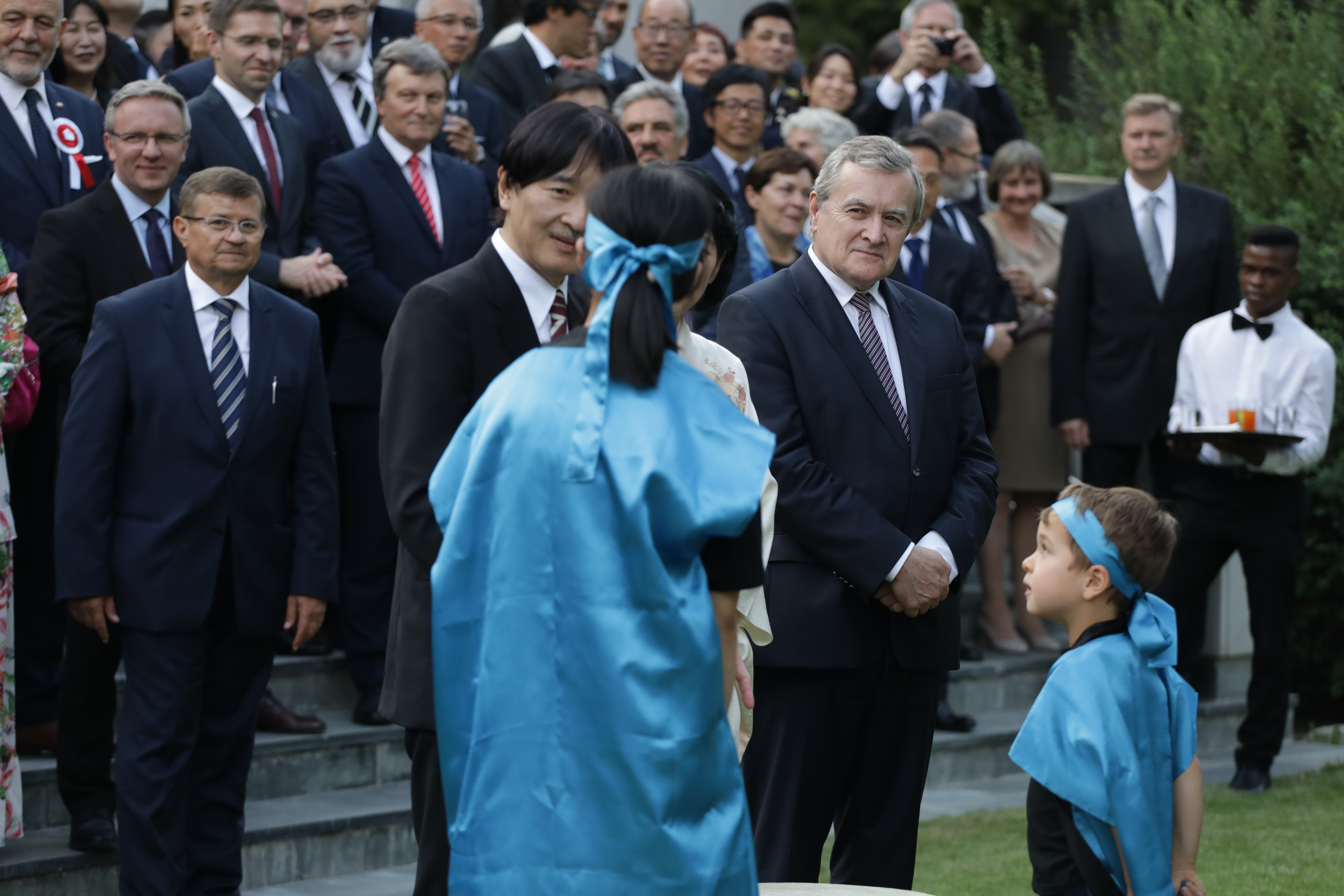Poniedziałkowe przyjęcie było jednym z ostatnich elementów kilkudniowej wizyty japońskiej pary książęcej w Polsce. Wcześniej tego dnia książę Akishino i księżna Kiko zasadzili drzewko wiśniowe w Ogrodzie Botanicznym PAN w Powsinie.
