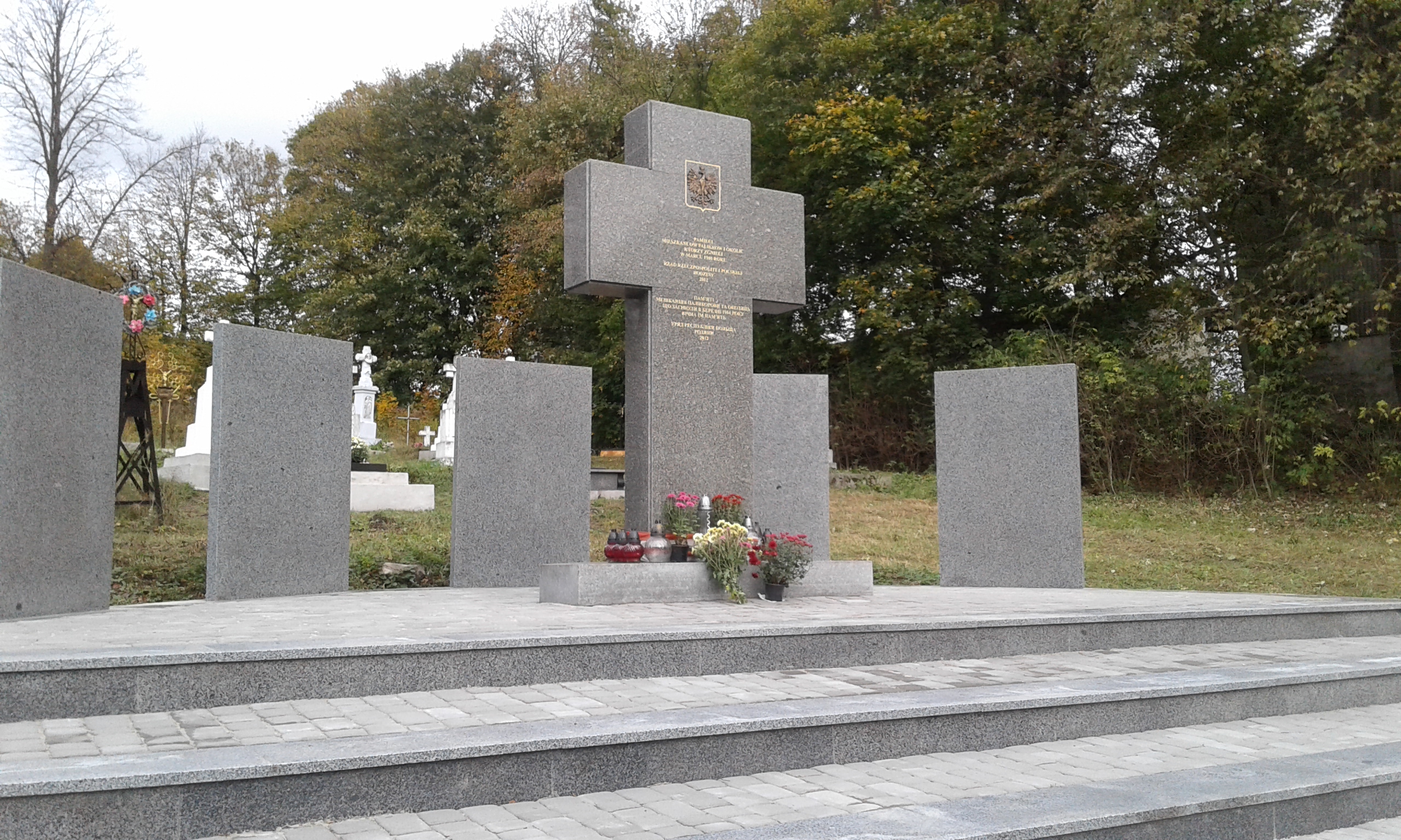 Uporządkowano i otoczono stałą opieką cmentarze: w Palikrowach i w Podkamieniu, na których łącznie spoczywa kilkaset ofiar OUN-UPA, zamordowanych w lutym 1944 r., w nieistniejącej już wsi Puźniki, na którym pochowano ok. 100 osób zamordowanych w lutym 1945 r. przez UPA, oraz w pobliskiej Nowosiółce Koropieckiej (obecnie Sadowe) – oba miejsca w dawnym województwie tarnopolskim.