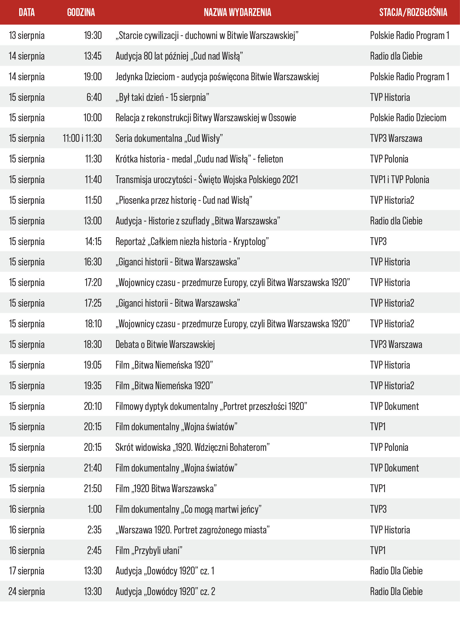 Tabela 2021 wydarzenia Bitwa Warszawska 1920Tabela_2021_wydarzenia_Bitwa_Warszawska_1920_akt.pdf 0.03MB Tabela 2021 w mediach Bitwa Warszawska 1920