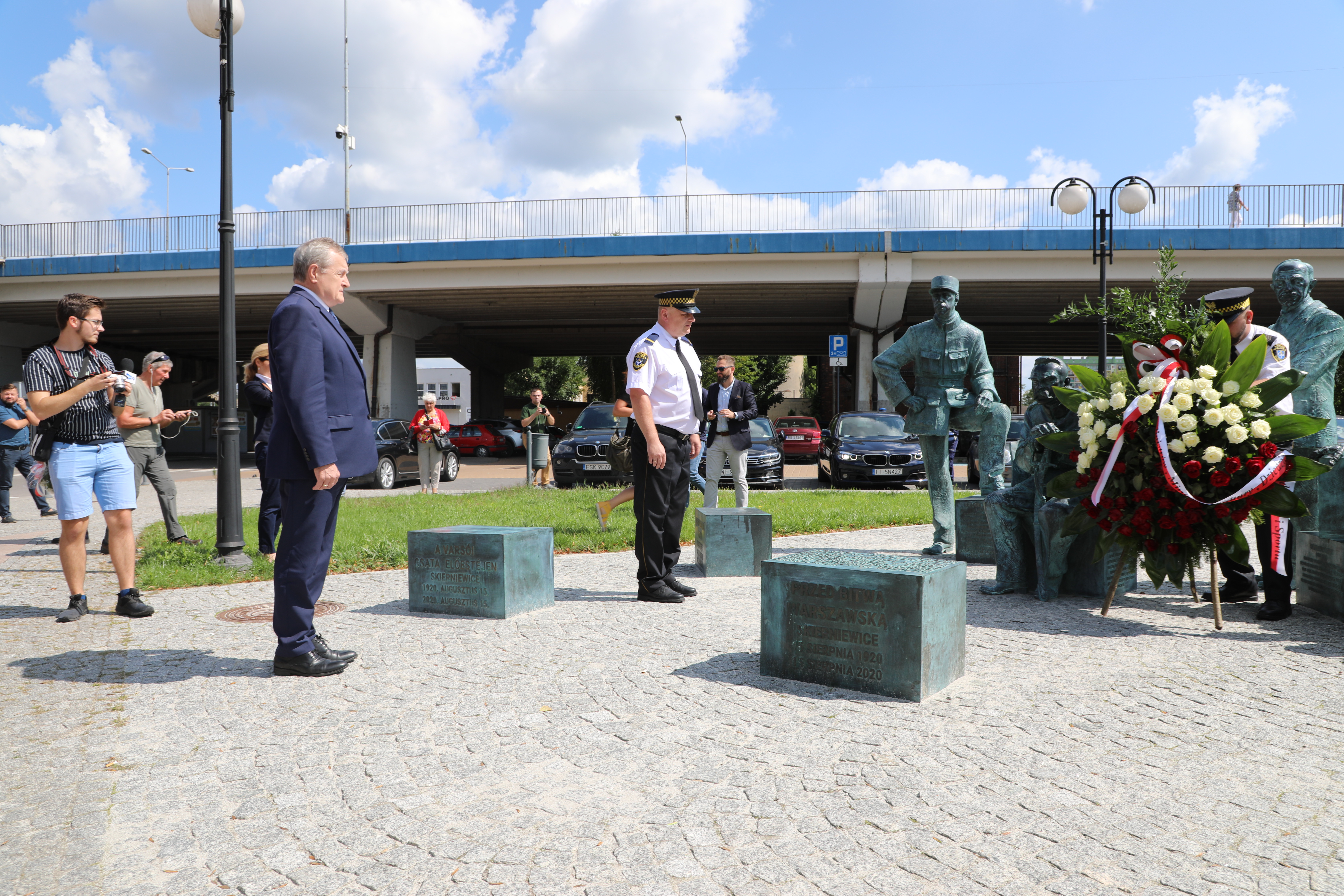 "To pomnik solidarności międzynarodowej. (…) To wspomnienie o tym, że z wielkim, straszliwym, potwornym przeciwnikiem, jeśli jest się odpowiednio zdeterminowanym, można stać w obronie tego, co najważniejsze. Dzięki temu żyjemy, jako Polska, jako wspólnota i możemy się rozwijać. Jeśli historia potoczyłaby się inaczej, być może Polski by nie było" – powiedział minister kultury, dziedzictwa narodowego i sportu prof. Piotr Gliński, składając kwiaty pod pomnikiem "Przed Bitwą Warszawską 1920" w Skierniewicach. Towarzyszyli mu prezydent Skierniewic Krzysztof Jażdżyk, dyrektor Biura Programu Niepodległa Jan Edmund Kowalski oraz przedstawiciele Stowarzyszenia Przed Bitwą Warszawską 1920.