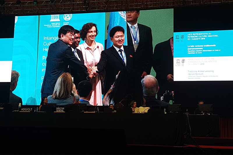 Dzięki osobistemu zaangażowaniu Dyrektor Generalnej UNESCO Audray Azouley oraz UNESCO udało się doprowadzić do konsensusu i wpisać wspólną tradycję uprawiania zapasów uprawianych zarówno w Korei Północnej, jak i Południowej, na Listę Reprezentatywną Niematerialnego Dziedzictwa Kulturowego Ludzkości.