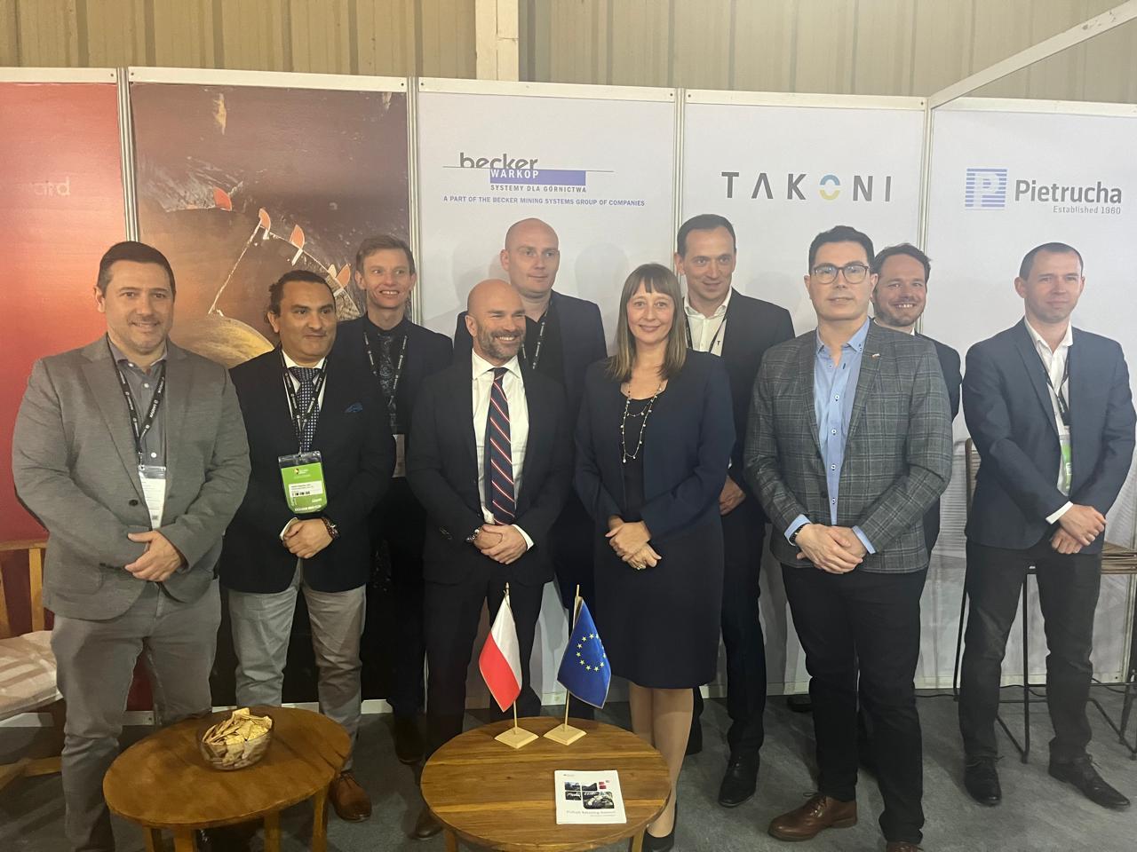 Aleksandra Piątkowska, en la presencia del Embajador de la Unión Europea en Argentina Amador Sánchez Rico y Marcelo Villa de la Agencia Polaca de Inversiones y Comercio PAIH, abrió el stand de Polonia en la Feria San Juan Minera 2024. Tres empresas polacas que ofrecen productos de tecnologías avanzadas para la industria minera se presentaron en la feria: Takoni, Pietrucha Group – GeoGav y Becker-Warkop.