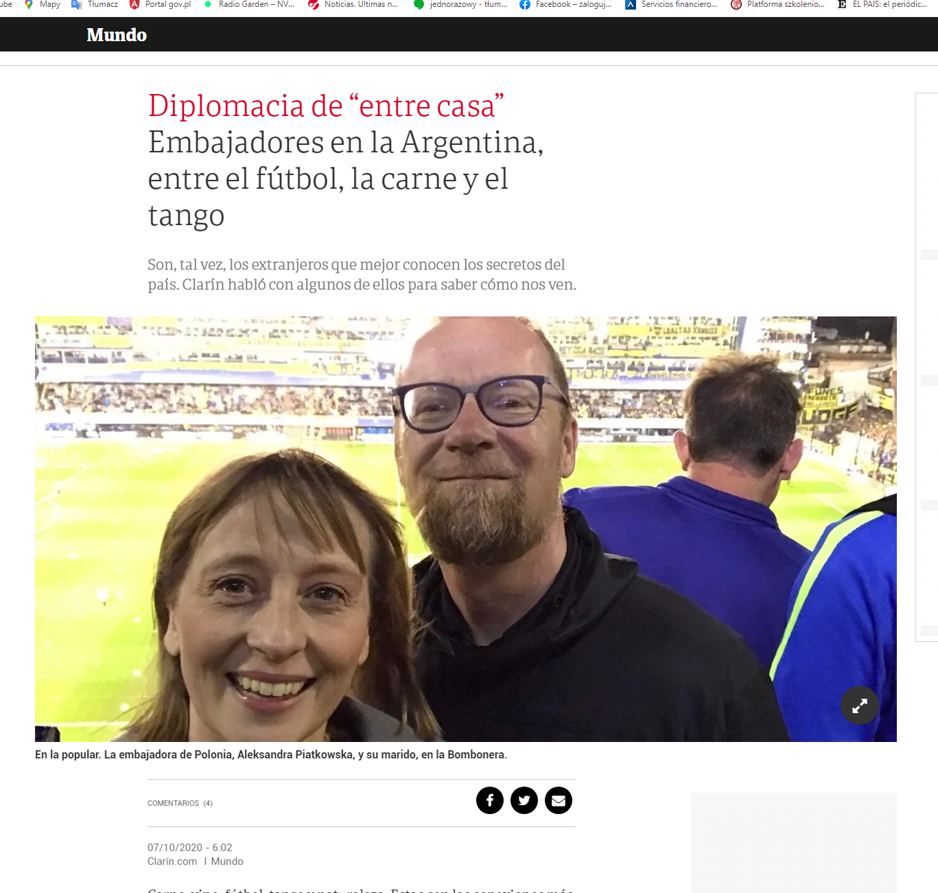 En el artículo en Clarín nueve embajadores y embajadoras, incluso la Señora Embajadora de Polonia, Aleksandra Piątkowska, muestran cómo viven desde que llegaron a Argentina.