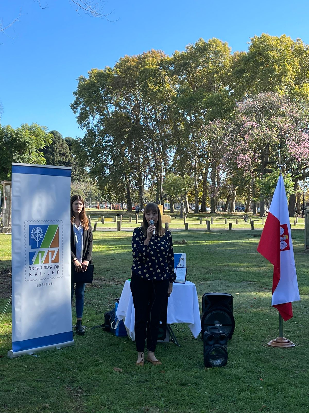 El Keren Kayemet LeIsrael en Argentina invitó a la Embajadora de Polonia Aleksandra Piątkowska a la plantación de un árbol en el Arboreto de las Naciones en la Plaza Israel.