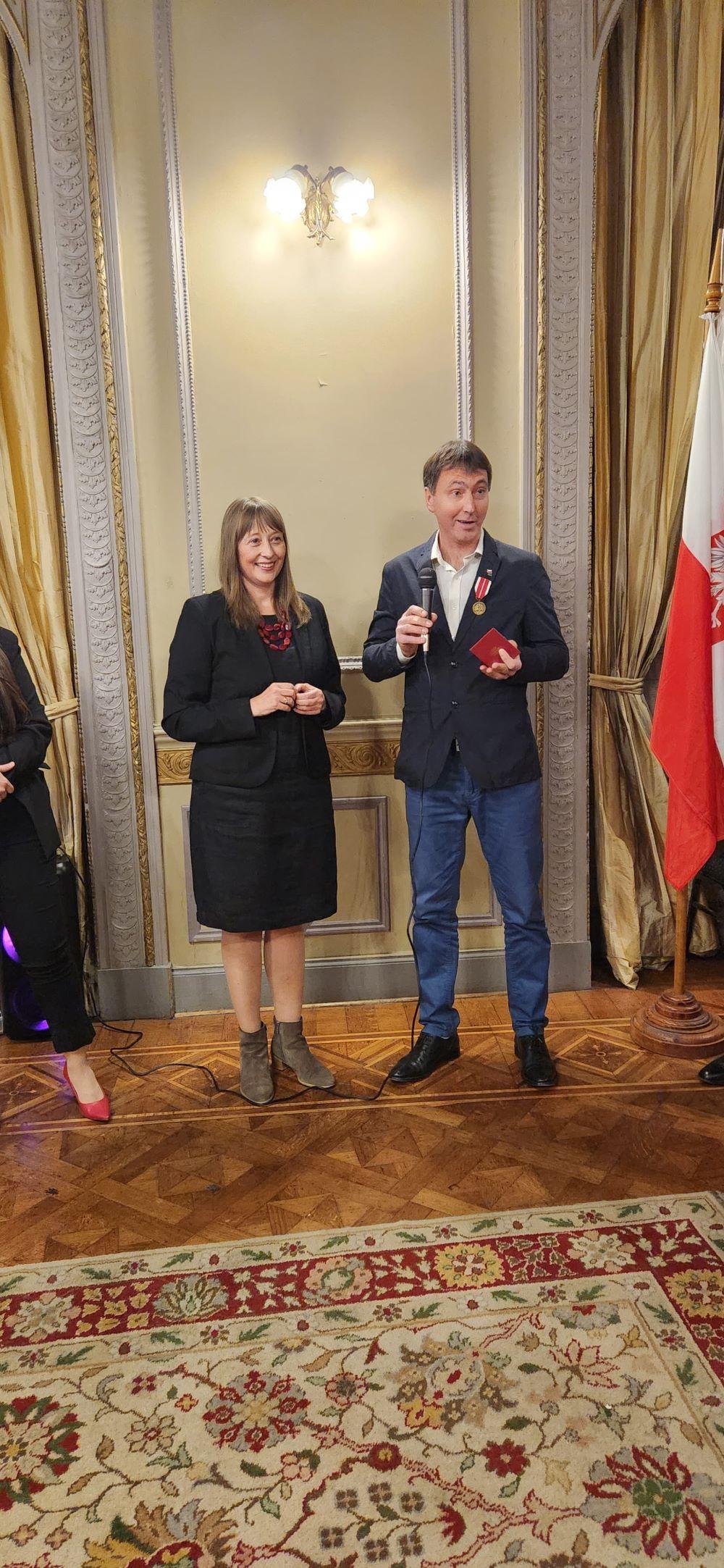“Amigo de la embajada desde hace mucho tiempo, persona asociada a Polonia desde hace varias décadas, promotor de empresas y empresarios polacos en Argentina, contribuyó activamente al fortalecimiento de los vínculos económicos entre los dos países. Miembro de la junta directiva de la Fundación Chopiniana desde hace años, ha apoyado financieramente a la embajada en repetidas ocasiones en la organización de eventos culturales", afirmó Aleksandra Piatkowska.