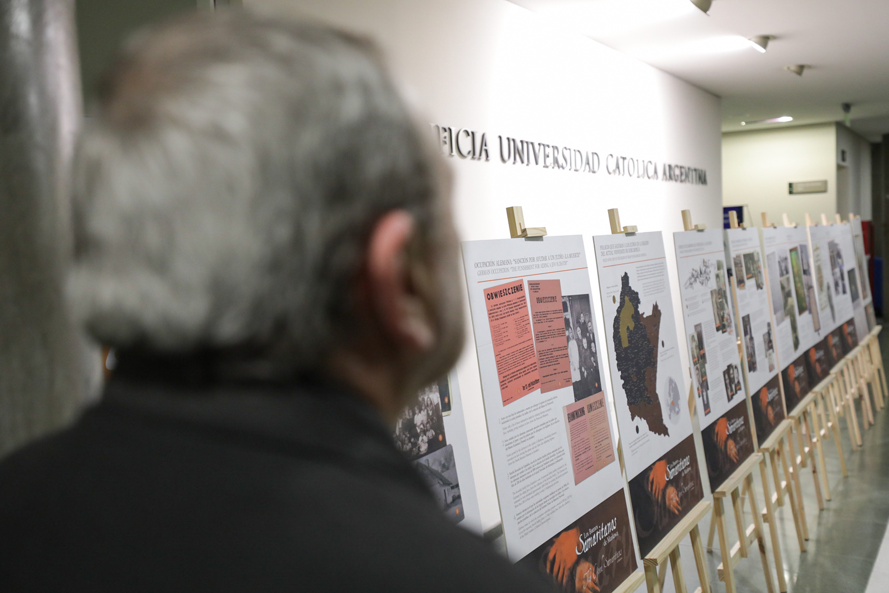 La exposición estará abierta al público hasta el 22 de septiembre en el hall del edificio de la Facultad de Derecho y Ciencias Sociales de la Pontificia Universidad Católica Argentina de Rosario.