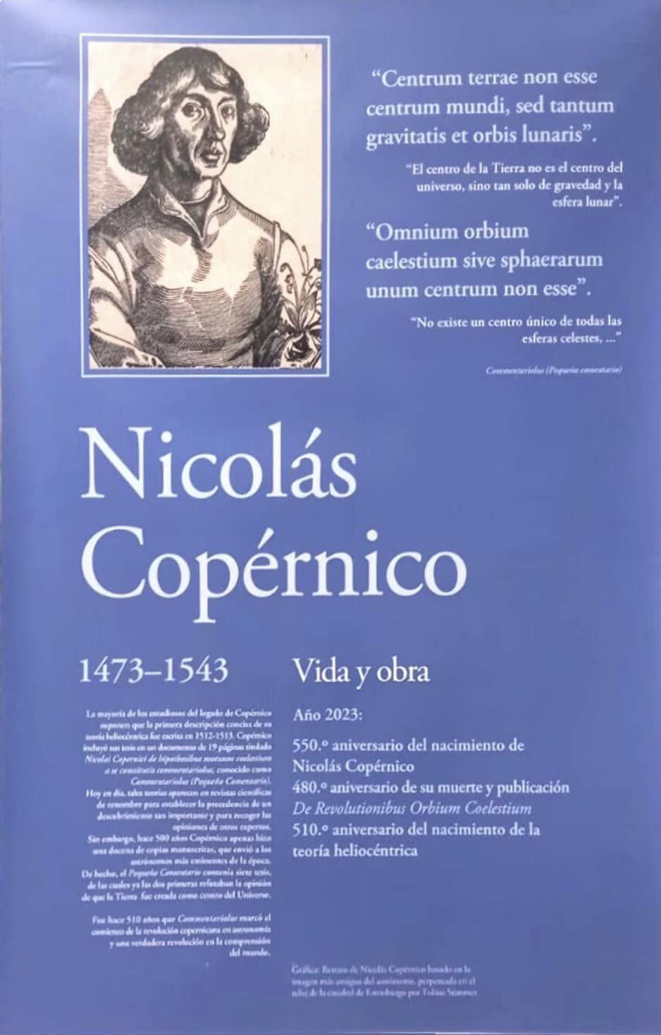 En el marco del Año de Mikołaj Kopernik, declarado por el Senado de la República de Polonia en conmemoración del 550.º aniversario del nacimiento y 480.º aniversario del fallecimiento del famoso científico polaco, que se celebra a lo largo del 2023, presentamos la muestra “La vida y obra de Nicolás Copérnico” preparada con los fondos de la Cancillería polaca destinados al apoyo de la colectividad polaca en el extranjero y por el Archivo de La Academia Polaca de Ciencias.
