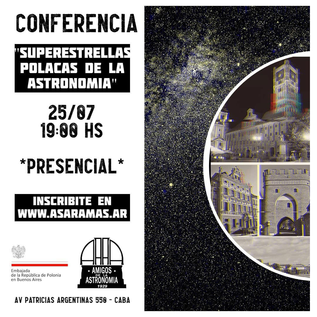 El martes 25/7, a las 19:00 Alicja Tunk, Agregada Cultural nos va a hablar sobre los logros de la astronomía polaca y sus mayores representantes.