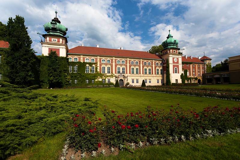 No es muy común buscar los espacios destinados para las fiestas pomposas en las construcciones edificadas para los monjes. Sin embargo, la Sala del Príncipe de la abadía cisterciense en Lubiąż cumplía también esta función. Es uno de los monumentos más valiosos de la época del Barroco en Polonia; se encuentra en el ala norte del complejo monacal y palaciego edificado en el siglo XVII pero sus decoraciones fueron realizadas también en el siglo siguiente. En el abundante conjunto de ornamentos de esta enorme sala se pueden encontrar las esculturas y bajorrelieves de Franciszek Józef Mangold (entre otros las figuras que rodean la entrada: el negro y el indígena, Atlas sosteniendo el balcón musical, tres figuras de los emperadores de Habsburgo, alegorías de las virtudes cardinales o personificaciones de Europa, Asia, América y África). La bóveda está adornada con un plafón de 24 por 14 metros, pintado por Christian Bentum y representa “La victoria de la Fe católica sobre las herejías y los infieles”. El rico programa iconográfico de la sala, que fue ideado por el abad Konstanty Beyer, tenía como propósito elogiar las virtudes del catolicismo y del poder de los emperadores de Habsburgo. Hoy en este enorme salón adornado de manera extraordinariamente rica se organizan, entre otros eventos, algunos conciertos del Festival Internacional Wratislavia Cantans.