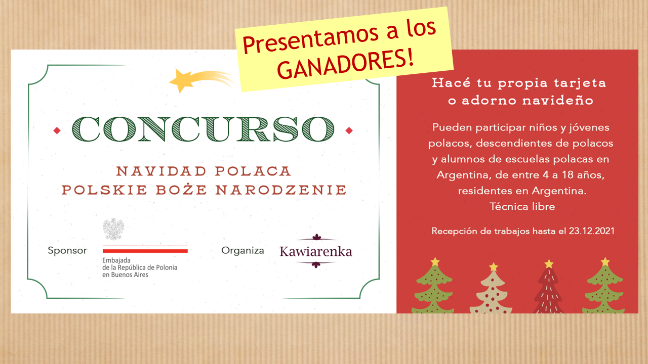 Tenemos el agrado de anunciar a los ganadores del concurso navideño "Navidad Polaca", organizado por Kawiarenka Polska y auspiciado por la Embajada de la República de Polonia en Buenos Aires.
