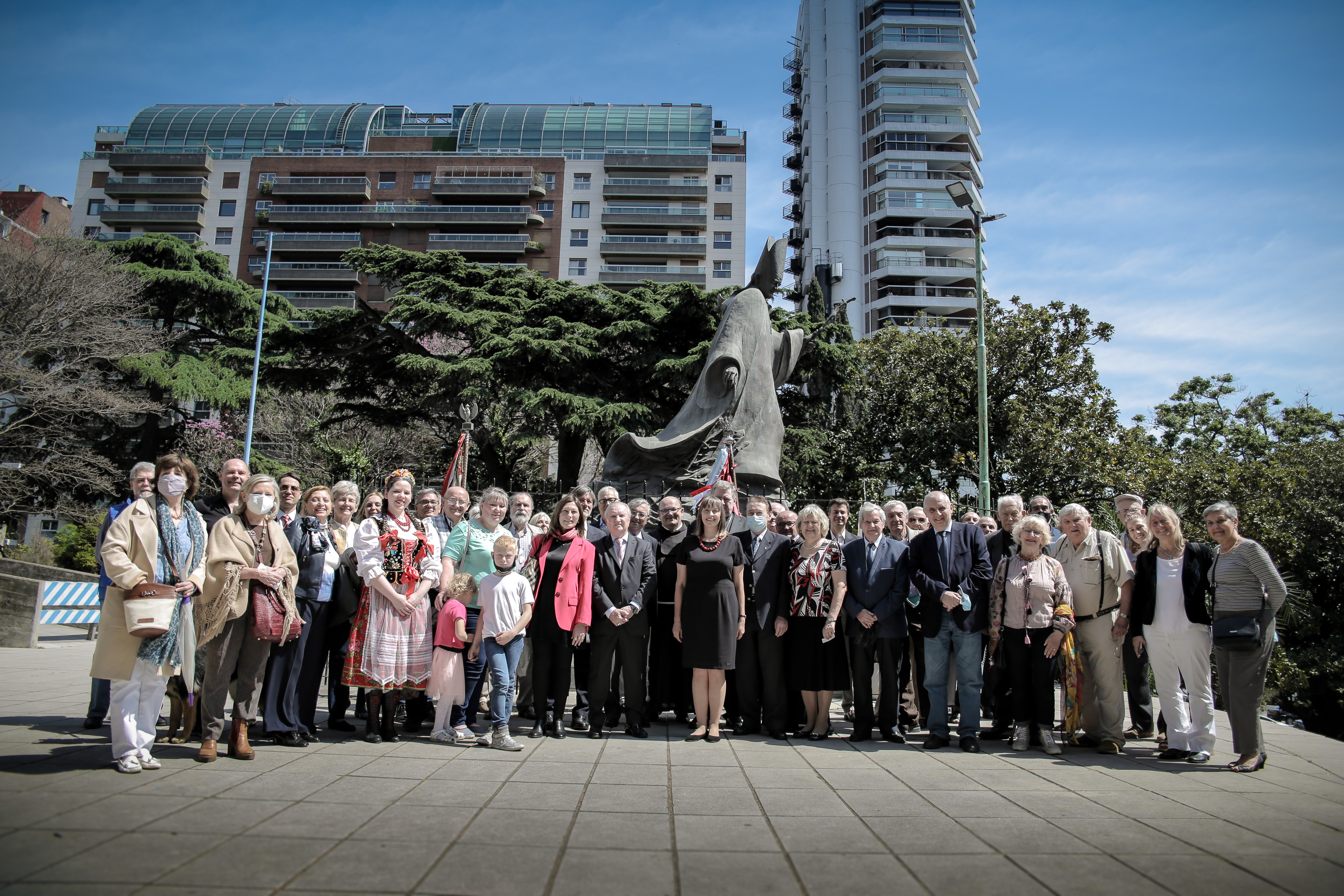 La Asociación Cultural Argentino-Polaca con su presidente Juan José Okecki y vicepresidente José Skowron Posluzna, junto con El Hogar Polaco con su presidenta Krystyna Wardyga organizaron la ceremonia del develamiento de la placa en el monumento al Papa polaco San Juan Pablo II. La placa fue bendecida por Mons. Mirosław Adamczyk, Nuncio Apostólico en la República Argentina.