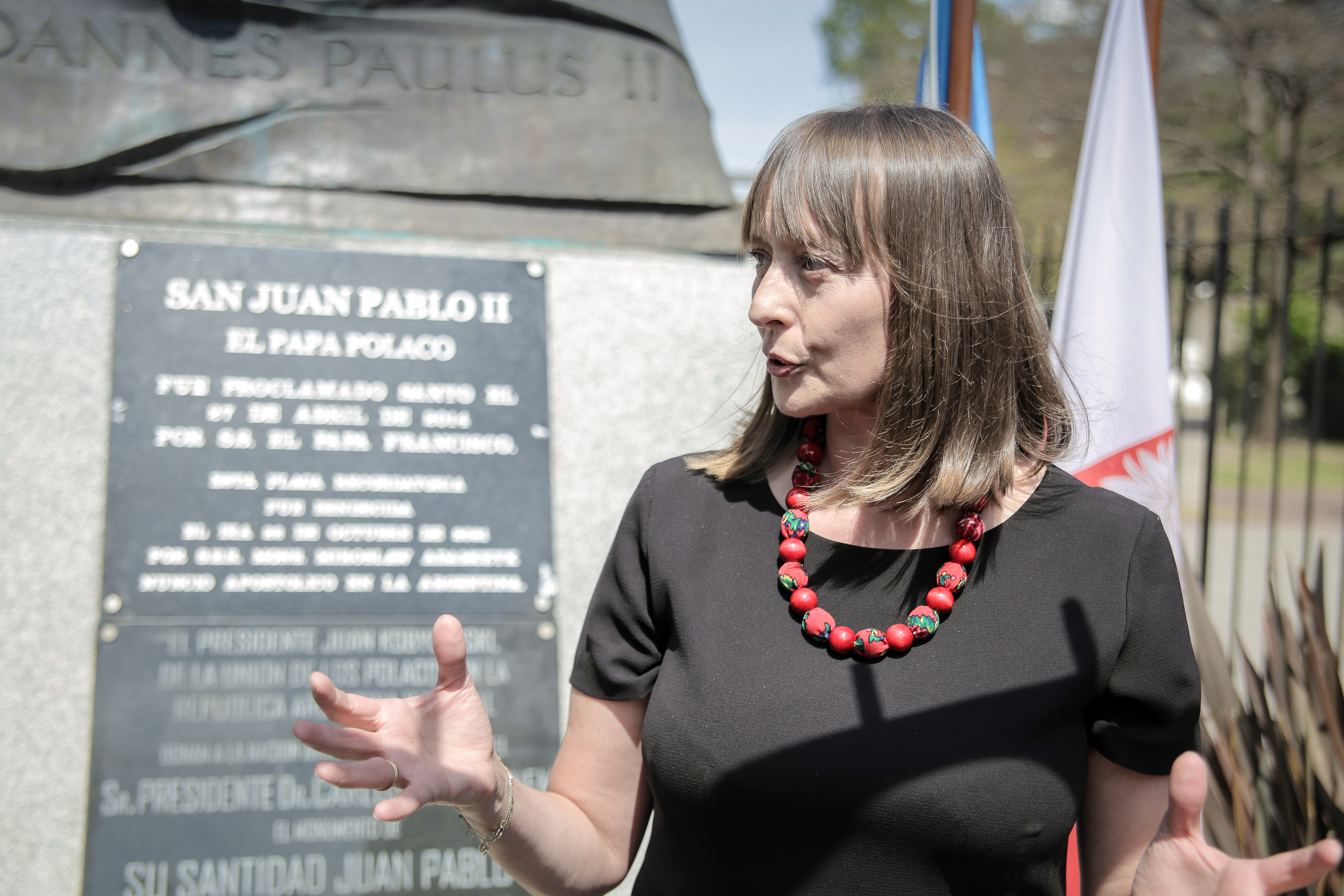 Embajadora Aleksandra Piątkowska participó de la ceremonia del develamiento de la nueva placa en el monumento al Papa polaco en Buenos Aires.