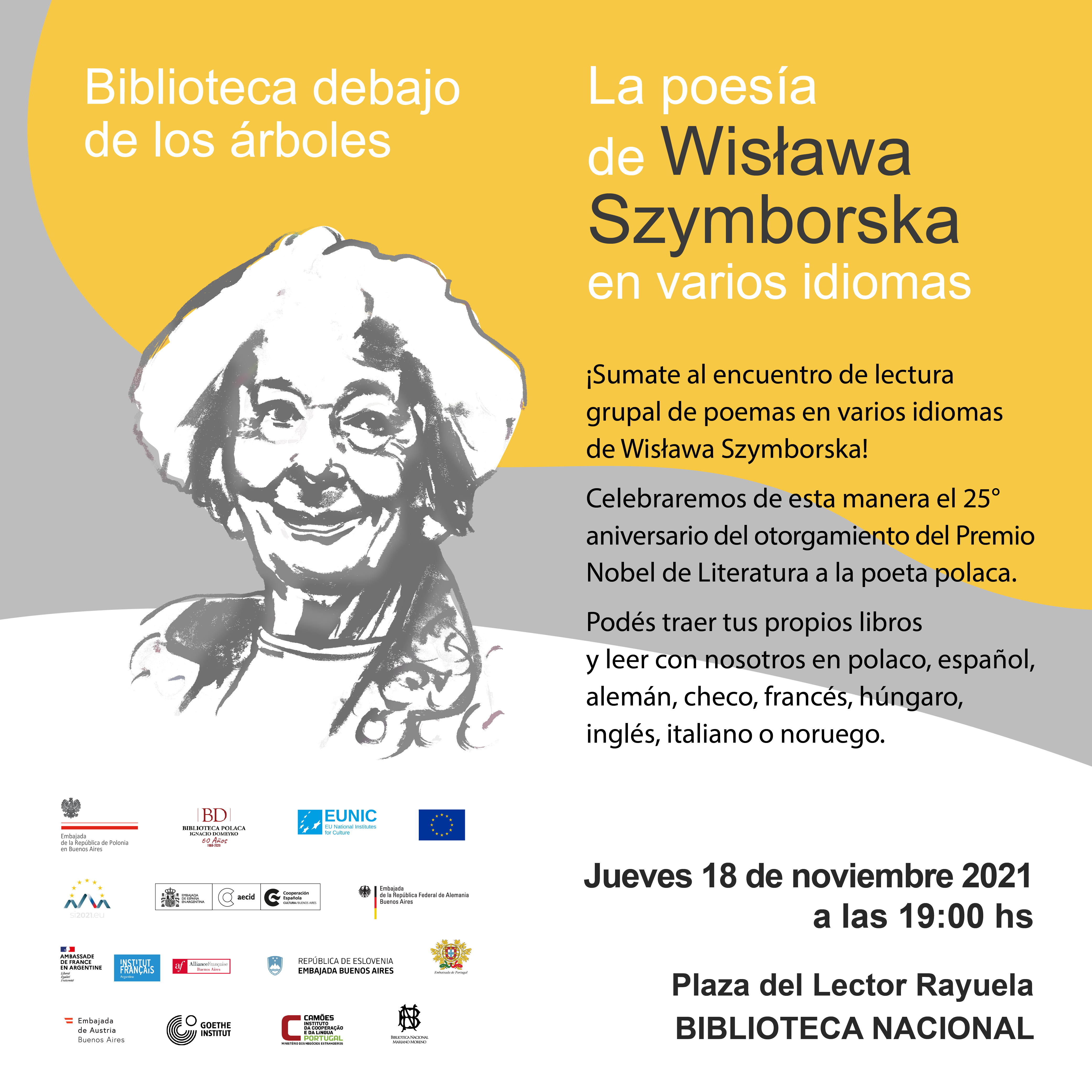 Ambasada RP w Buenos Aires zaprasza do wspólnego czytania wierszy Wisławy Szymborskiej w ogrodach Biblioteki Narodowej w Buenos Aires.