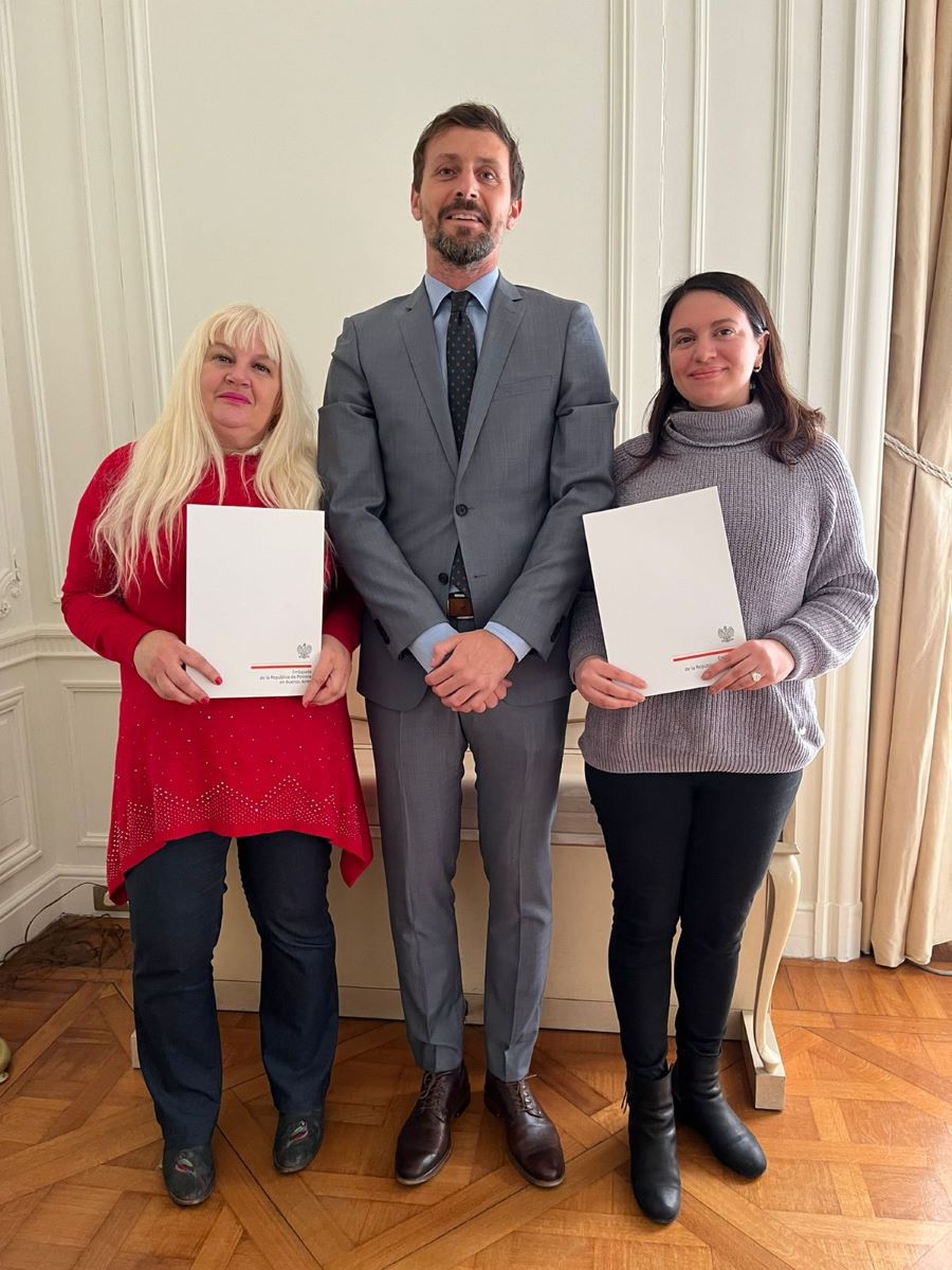 Na zdjęciu Mónica Sanetra i Sabrina Torres Sanetra z Michałem Świetlikiem, Konsulem RP w Argentynie.