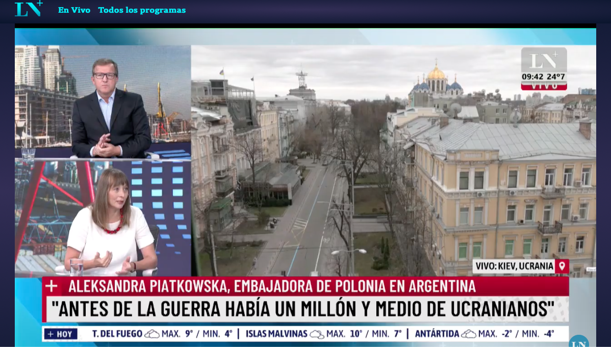 Aleksandra Piątkowska, Ambasador RP w Argentynie udzieliła serii wywiadów na temat agresji Rosji na Ukrainę.