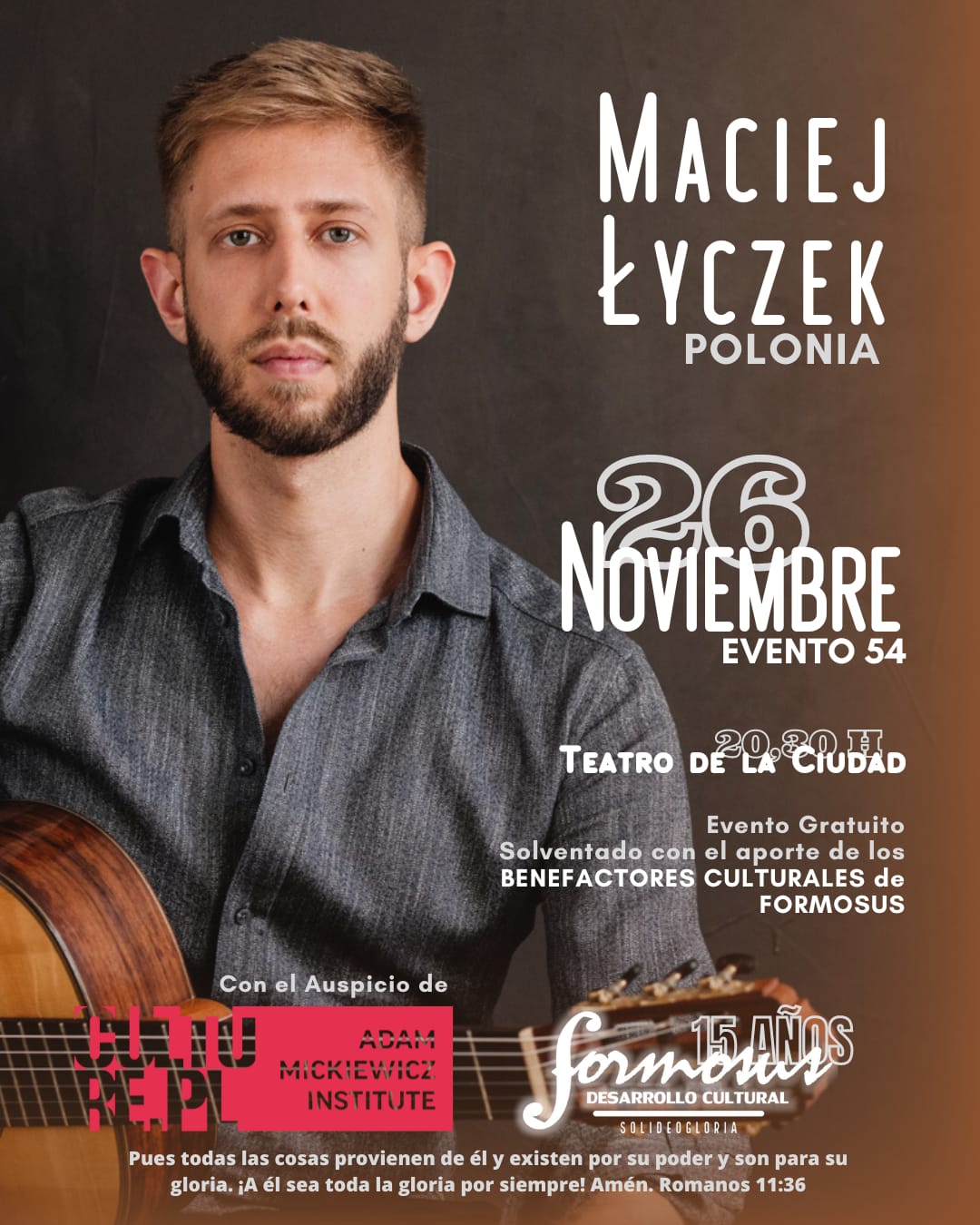 W tym tygodniu będzie można usłyszeć go na koncertach w Teatro la Salita w Morón, w Instituto de Música de Municipalidad de Avellaneda oraz w Teatro de la Ciudad de Formosa. Ponadto wygłosi na Universidad Nacional de las Artes wykład pt. „George Crumb – Symboliczne i estetyczne aspekty w The Ghosts of Alhambra”