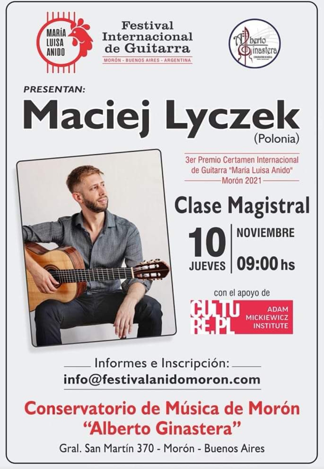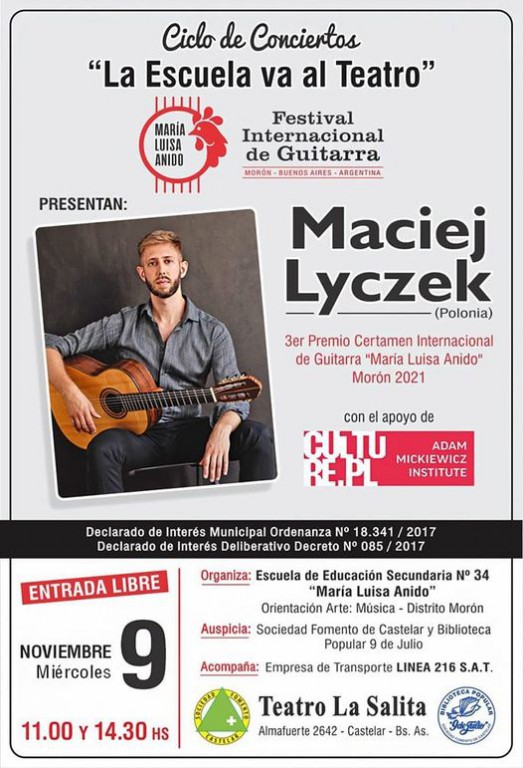 Maciej Łyczek otrzymał III nagrodę – wraz z Danielem Poblete – na V Międzynarodowym Festiwalu Gitarowym „María Luisa Anido” Morón 2021. Warto wspomnieć, że nie po raz pierwszy został wyróżniony w Argentynie. W październiku 2017 roku Polak zdobył I nagrodę na V Międzynarodowym Konkursie Gitarowym Santa María de los Buenos Aires.
