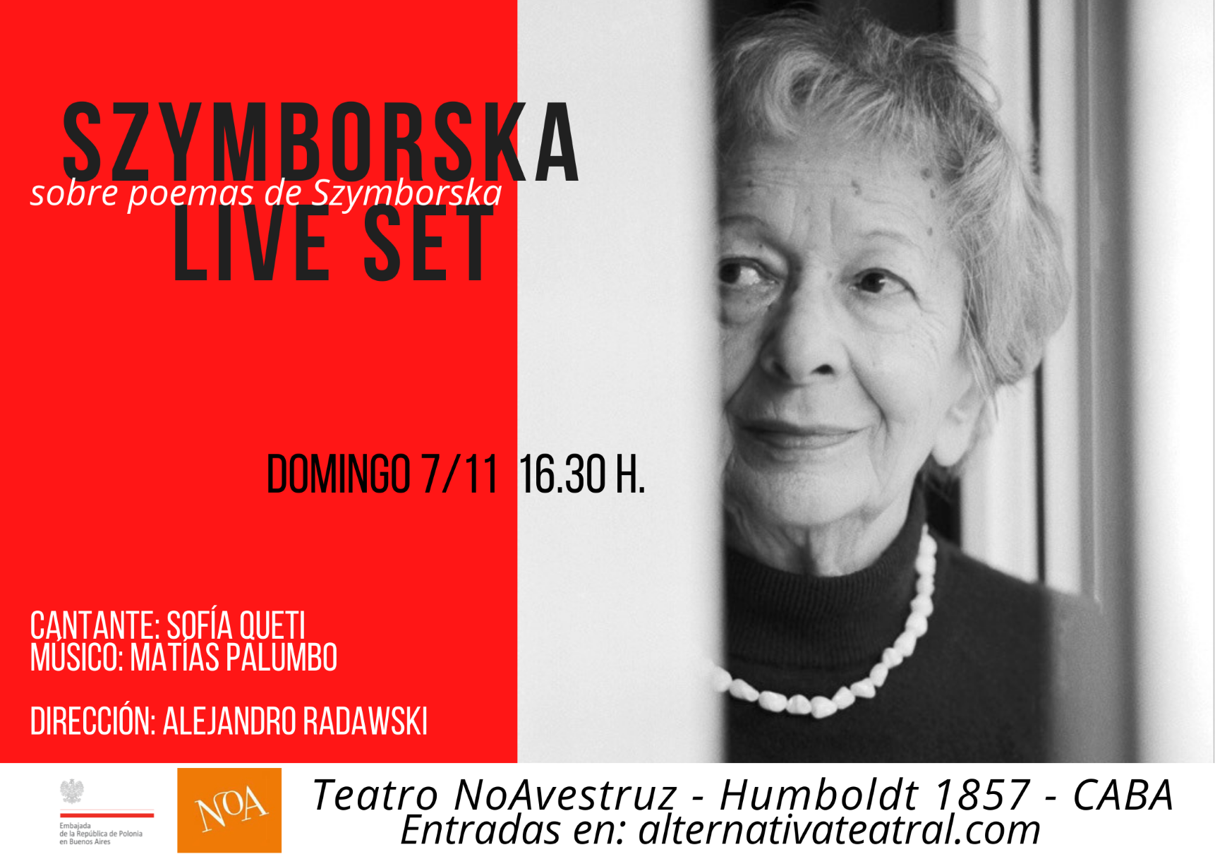 Posłuchaj wierszy Szymborskiej w oprawie muzycznej! Zaprezentowanych zostanie osiem pieśni stworzonych na podstawie wierszy Wisławy Szymborskiej, znanej polskiej poetki, laureatki Literackiej Nagrody Nobla z 1996 roku. Interpretacji wybranych utworów dokonają Sofia Queti, śpiew i Matías Palumbo, muzyka i aranżacja pod dyrekcją artystyczną Alejandro Radawskiego.