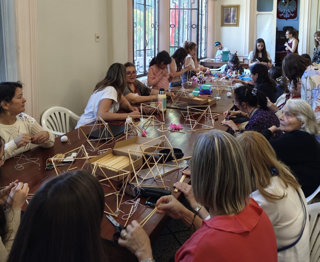 Podczas spotkań w Związku Polaków i Sekcji B. Wojskowych Domu Polskiego w Santa Fe uczestnicy wykonywali pająki ludowe oraz wycinanki. Pająki, dawne ozdoby zawieszane pod sufitem, symbolizowały dostatek i szczęście w domu. A także pełniły funkcję dekoracyjną podczas świąt Bożego Narodzenia. Wycinanki natomiast były ważnym elementem zdobienia izb wiejskich, wykonywanym ręcznie z kolorowego papieru. W Centrum Kultury Kino Polskie MdP Stowarzyszenie Obywatelskie w Mar del Plata warsztaty poświęcone były tworzeniu łańcuchów choinkowych oraz papierowych ozdób świątecznych. Tradycyjne łańcuchy, znane w polskich domach od pokoleń, powstawały z kolorowego papieru i stanowiły jedną z najprostszych form dekorowania choinki, często wykonywana rodzinnie, przy wspólnym stole. Z kolei w Montevideo w siedzibie Towarzystwa Polskiego Imienia Marszałka Józefa Piłsudskiego uczestnicy skupili się na wykonywaniu pająków bożonarodzeniowych, poznając ich symbolikę oraz regionalne odmiany tej tradycji.