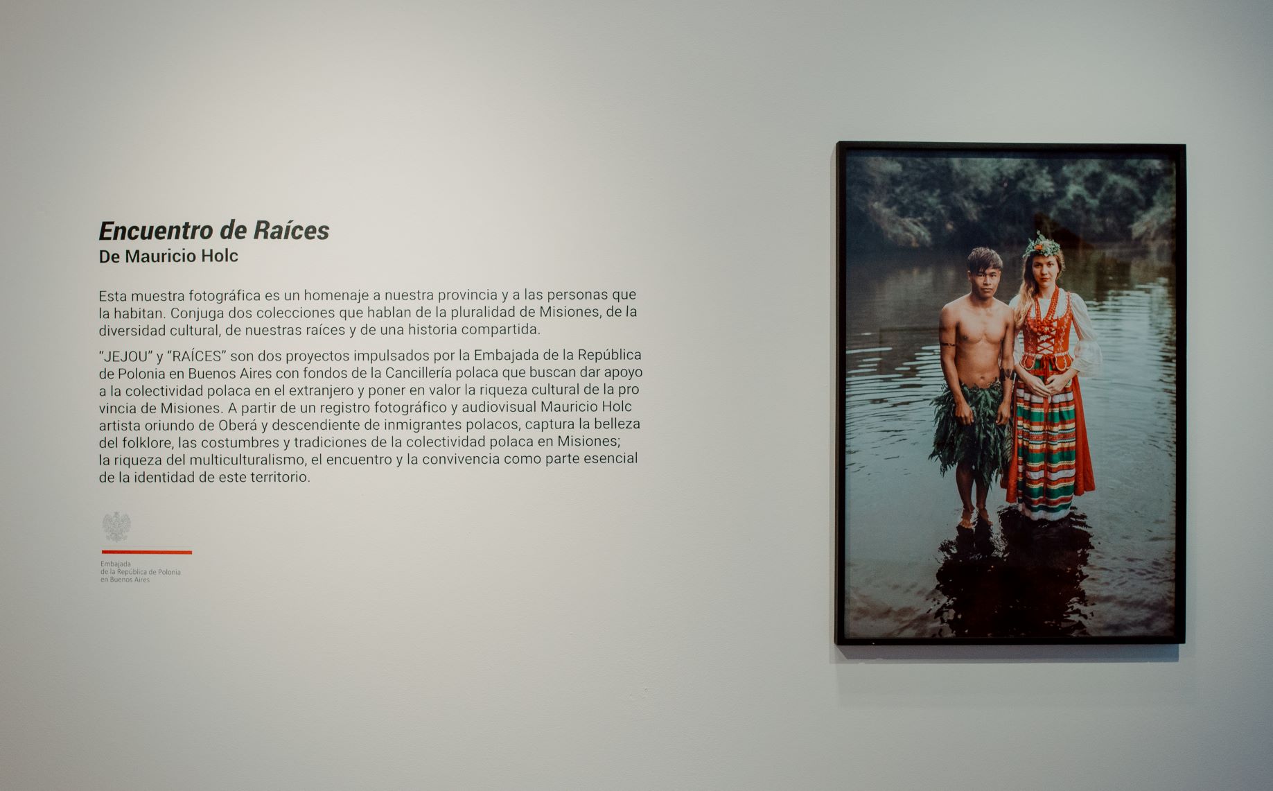 Na kolekcję składają się zdjęcia pochodzące z dwóch projektów audiowizualnych sfinansowanych przez Ambasadę RP w Buenos Aires ze środków Ministerstwa Spraw Zagranicznych przeznaczonych na współpracę z Polonią i Polakami za Granicą. „JEJOU” to wspólna inicjatywa Ambasady RP w Buenos Aires i Stowarzyszenia Polskiego w Oberá, zrealizowana w 2019 roku z udziałem członków Zespołu Pieśni i Tańca „Nasza Mała Polska” z Oberá i rdzennej wspólnoty Guaraní Mbyá El Chapá z Colonia Alberdi. „RAÍCES” z kolei miało swoją premierę w listopadzie ubiegłego roku w przedstawicielstwie rządu prowincji Misiones w Buenos Aires (Casa de Misiones) i w przestrzeni publicznej miasta, na ogrodzeniu Ogrodu Botanicznego im. Carlosa Thaysa. Obie wystawy są hołdem złożonym prowincji Misiones i jej mieszkańcom, wyrazem uznania dla przywiązania potomków polskich imigrantów do polskich tradycji i próbą pokazania bogactwa kultur obecnych w tym regionie Argentyny. Maurico Holc pokazuje piękno polskiego folkloru i polskich zwyczajów nadal kultywowanych w Misiones, podkreślając jednocześnie wielokulturowość tej prowincji i znaczenie spotkania i mieszania się różnych tradycji dla miejscowej tożsamości.