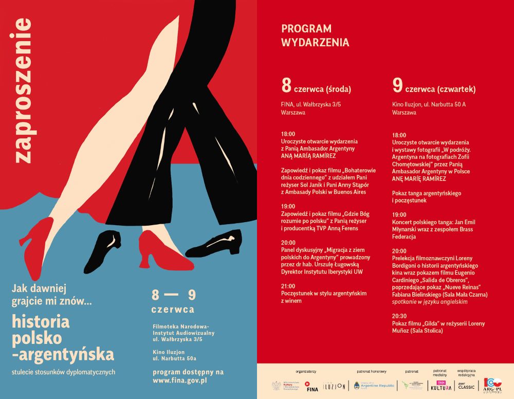 Filmoteka Narodowa – Instytut Audiowizualny zaprasza w dniach 8-9 czerwca 2022 roku do siedziby FINA oraz kina Iluzjon na wyjątkowe wydarzenie organizowane z okazji stulecia polsko- argentyńskich stosunków dyplomatycznych.